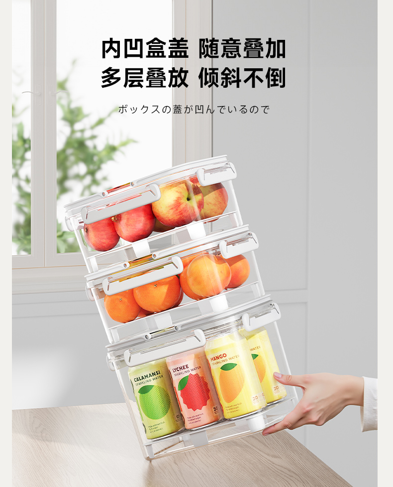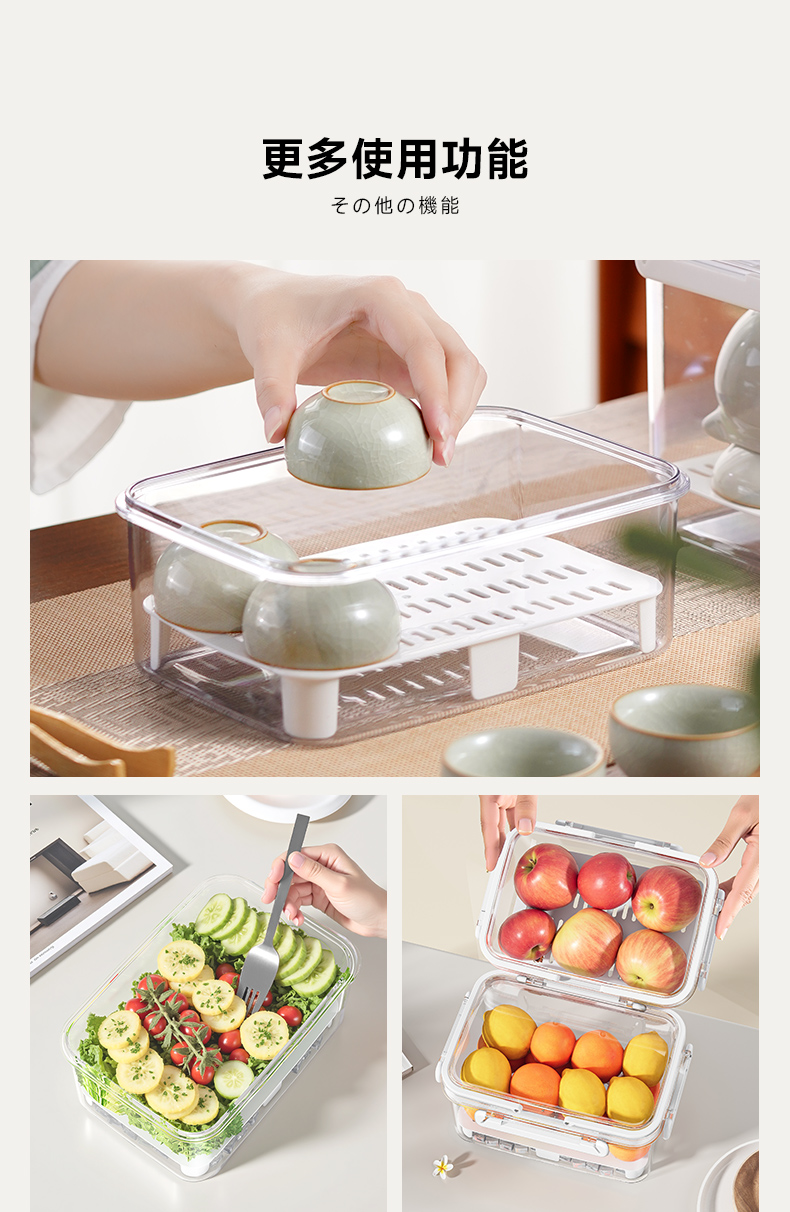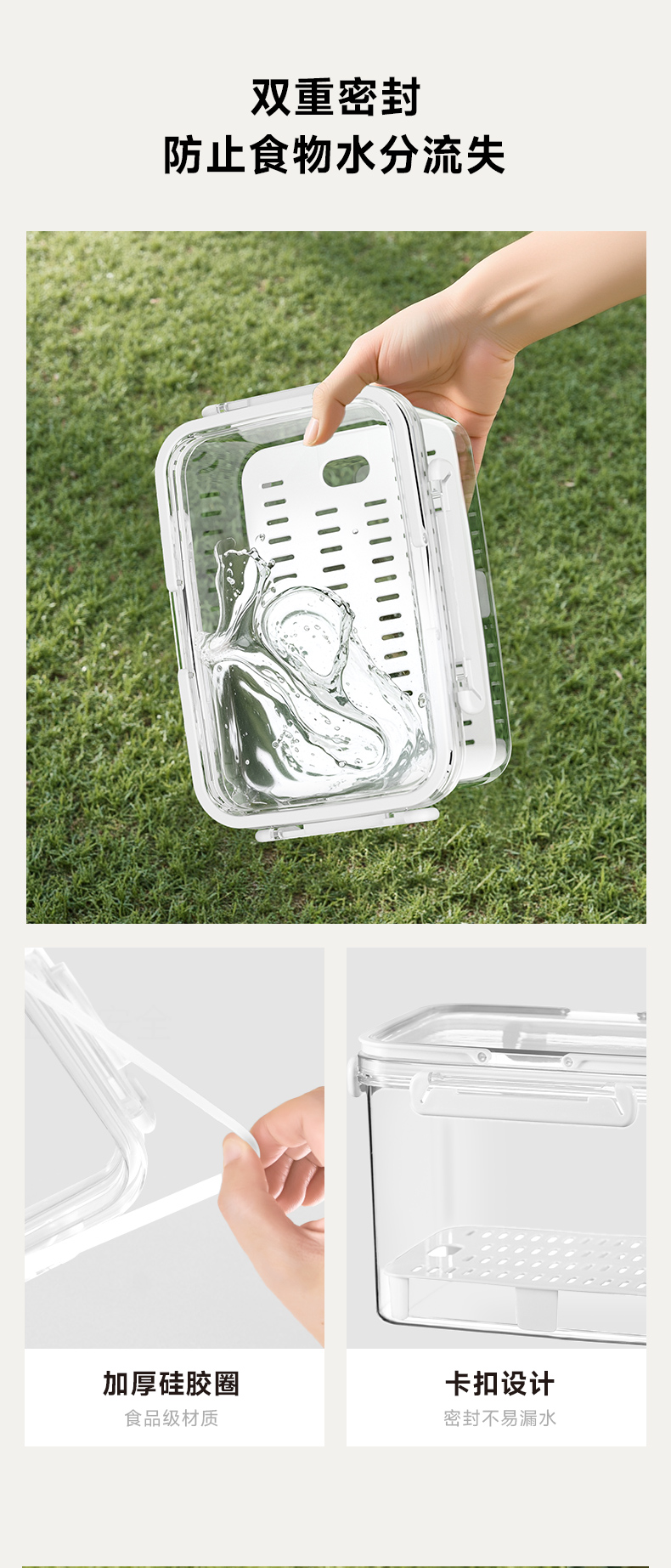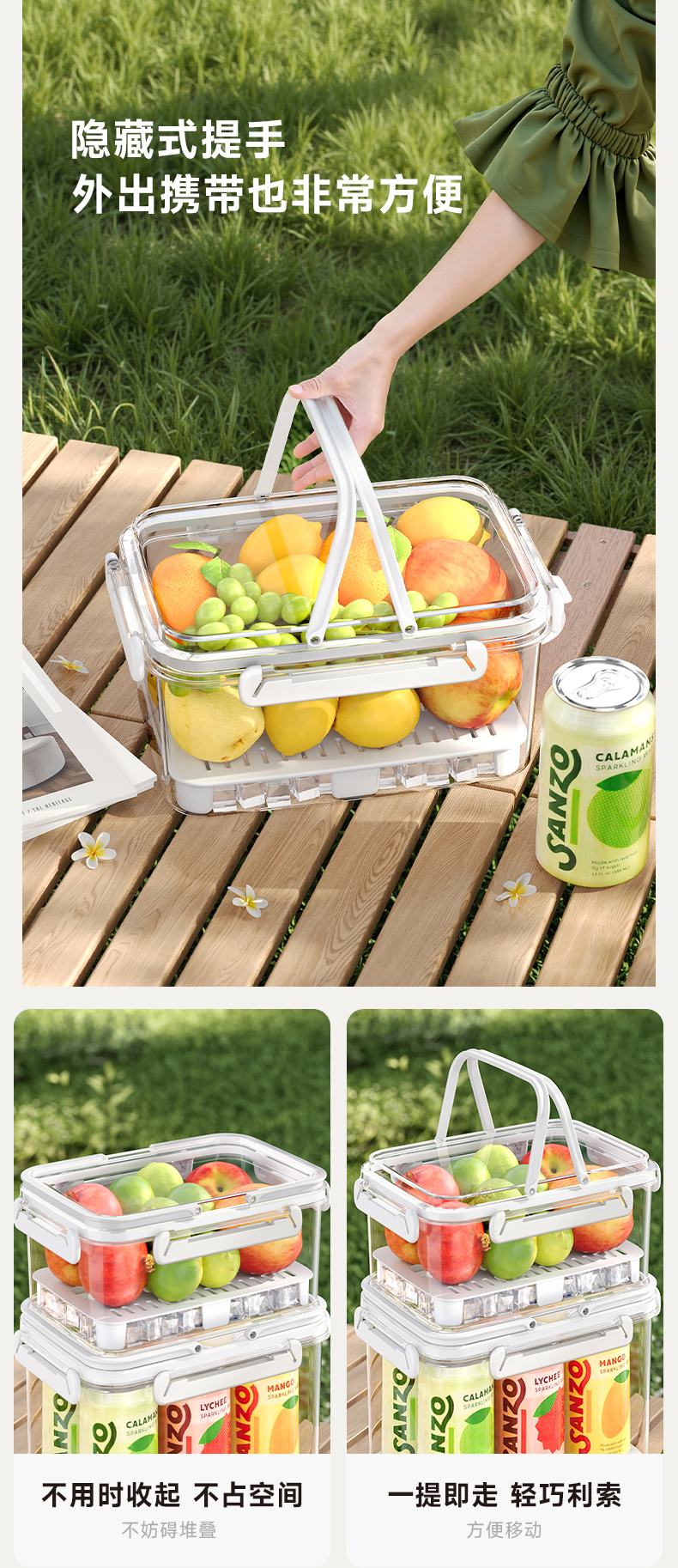 提手保鲜盒3400ml 手提双层保鲜盒杂粮蔬菜冰箱可用便 当盒户外野餐蓝零食水果茶具收纳盒