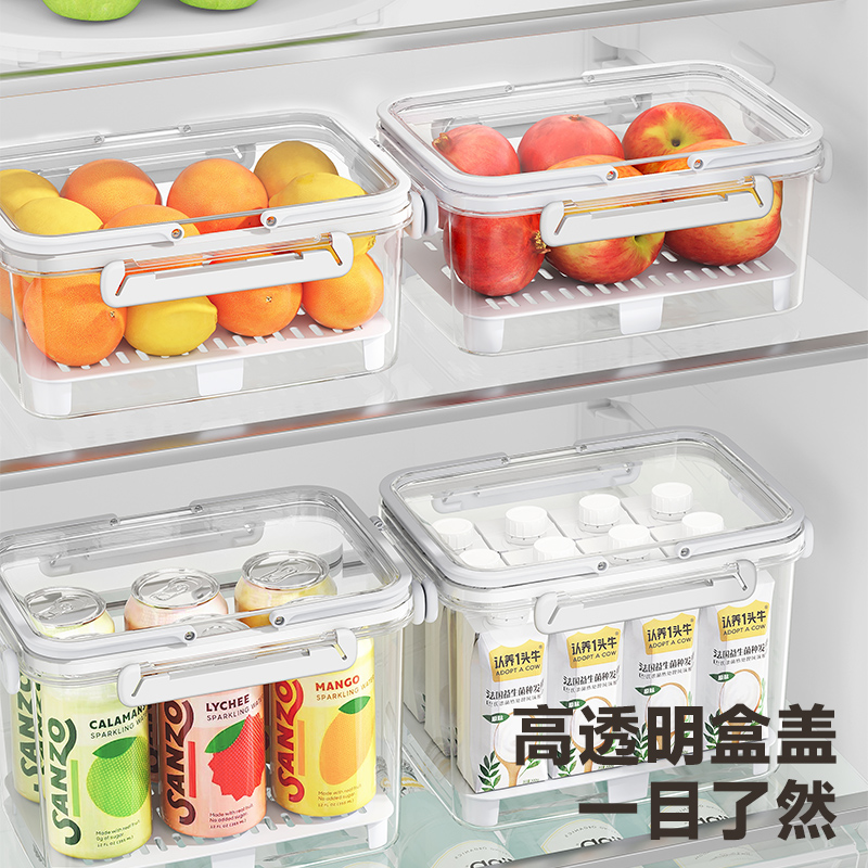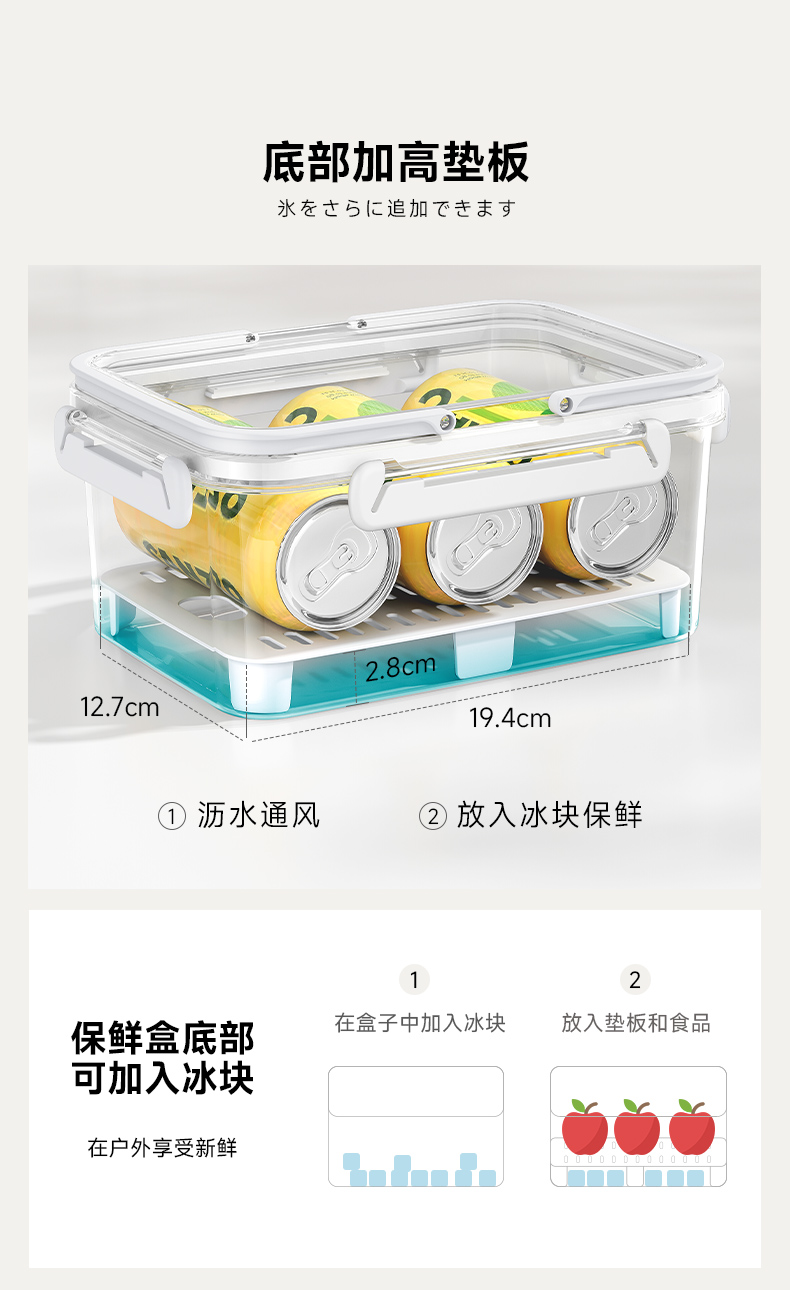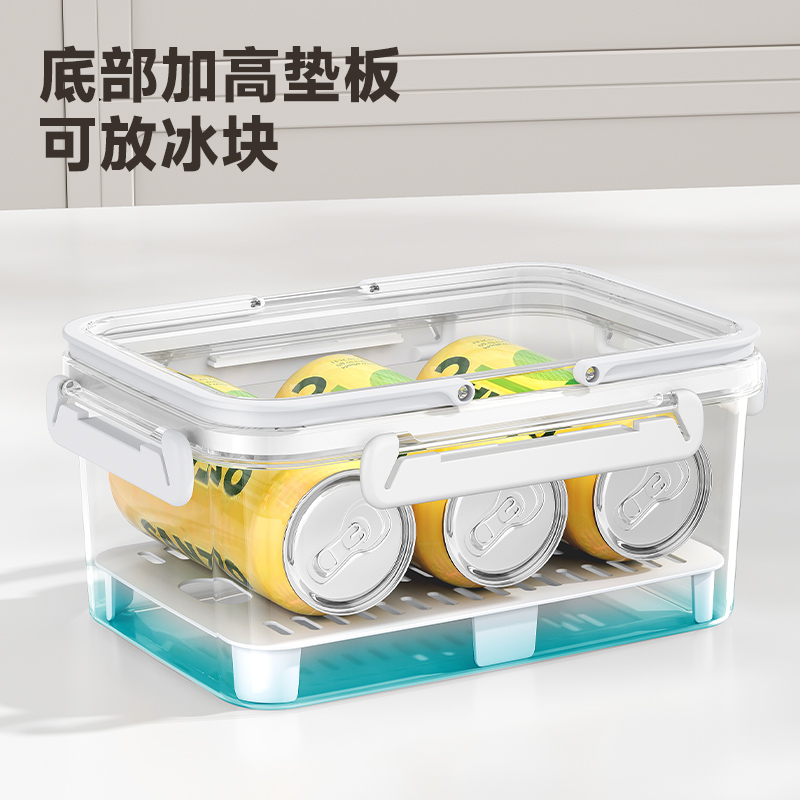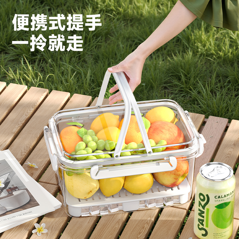 D提手保鲜盒1800ml 手提双层保鲜盒杂粮蔬菜冰箱可用便 当盒户外野餐蓝零食水果茶具收纳盒