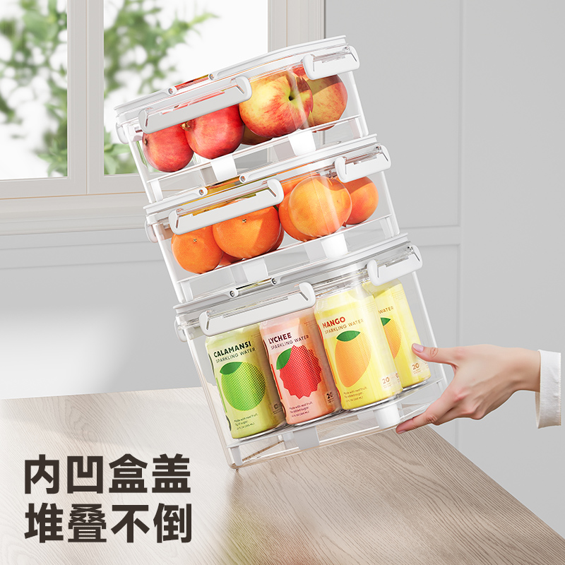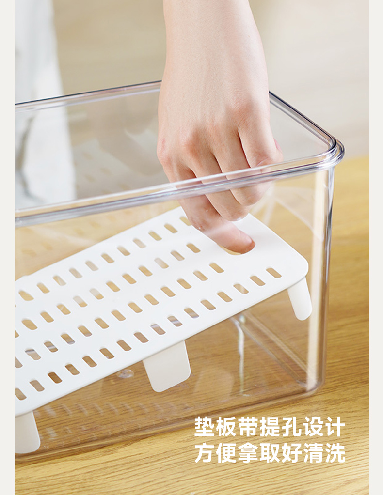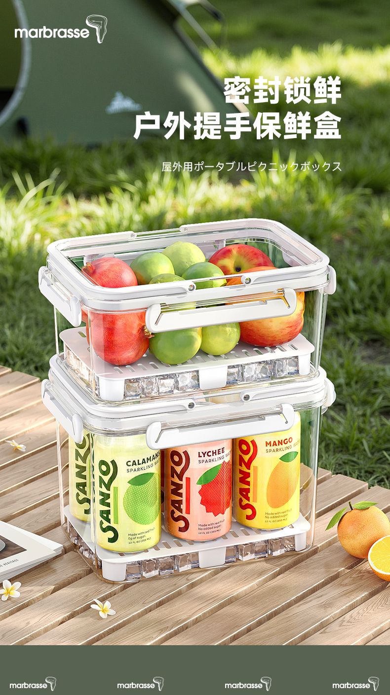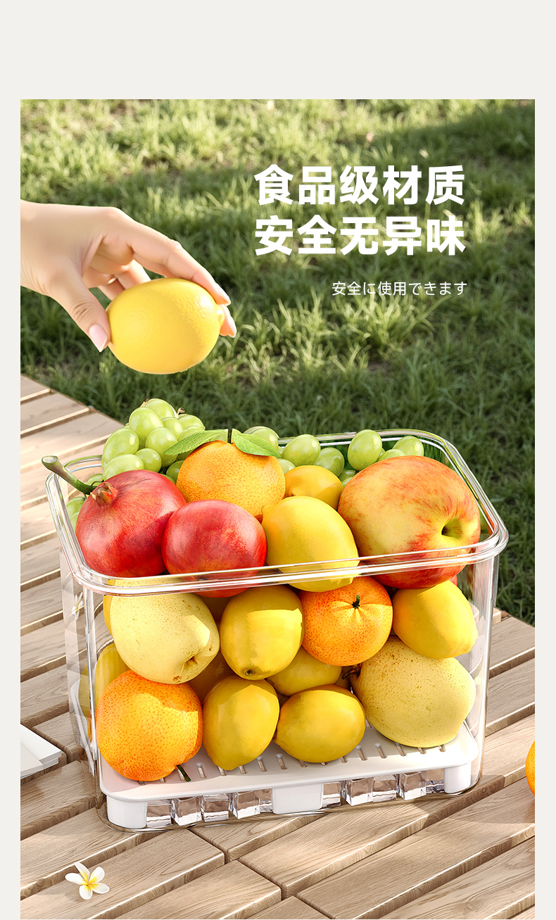 D提手保鲜盒1800ml 手提双层保鲜盒杂粮蔬菜冰箱可用便 当盒户外野餐蓝零食水果茶具收纳盒