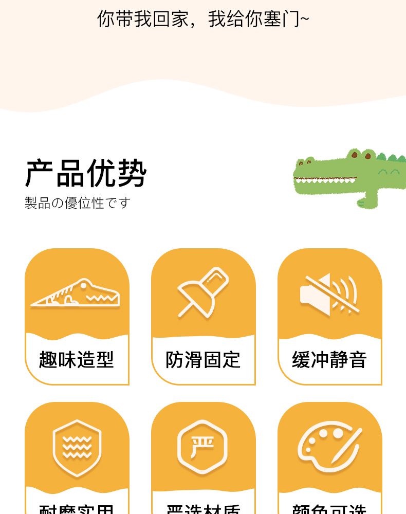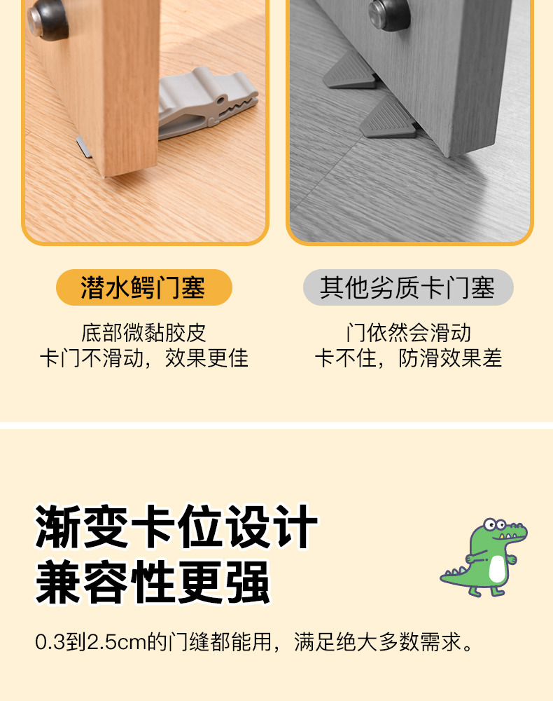 潜水鳄门塞 小鳄鱼门塞免打孔房门锁阻门器防撞门挡堵门器家用静音固定卡顶门器
