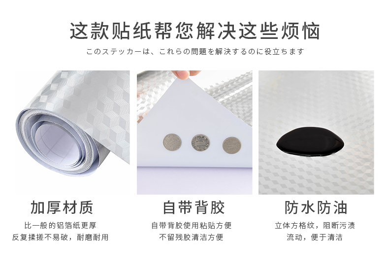 D 铝箔防油污贴纸 60cm*3m 菱形纹 加厚橱柜垫纸自粘防水防潮厨房防油贴纸铝箔纸锡纸柜灶台用