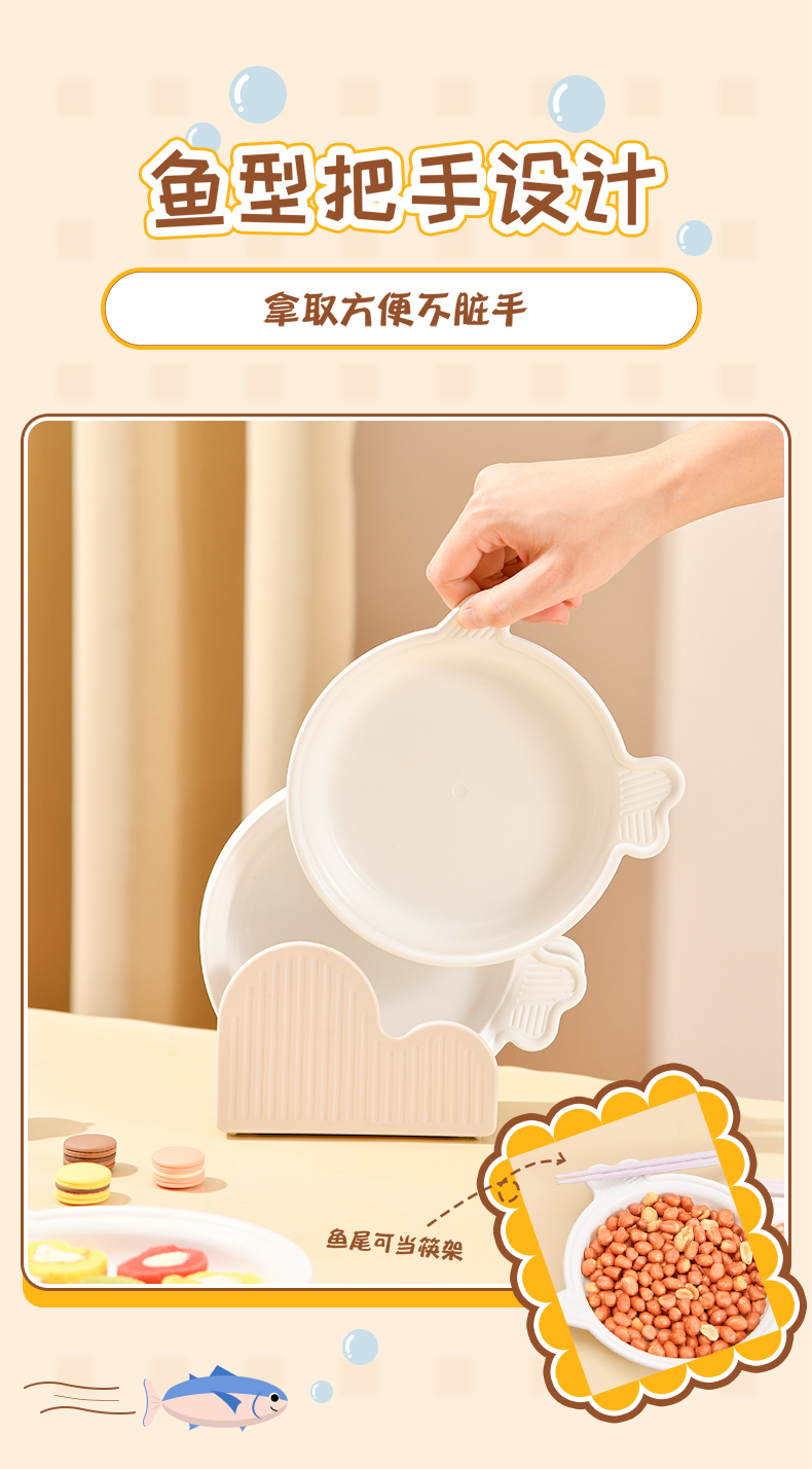 Subekyu鱼形吐骨碟(4个装) 吐骨碟家用食品级水果盘碟餐桌桌面收纳碟小菜碟垃圾盘碟