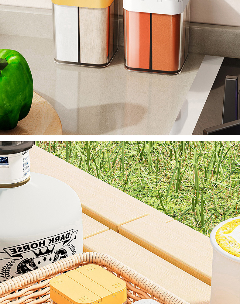 四分格调味罐(滑动款) 调料盒厨房调料瓶调味罐四分格调料罐防潮盐罐盖子可滑动