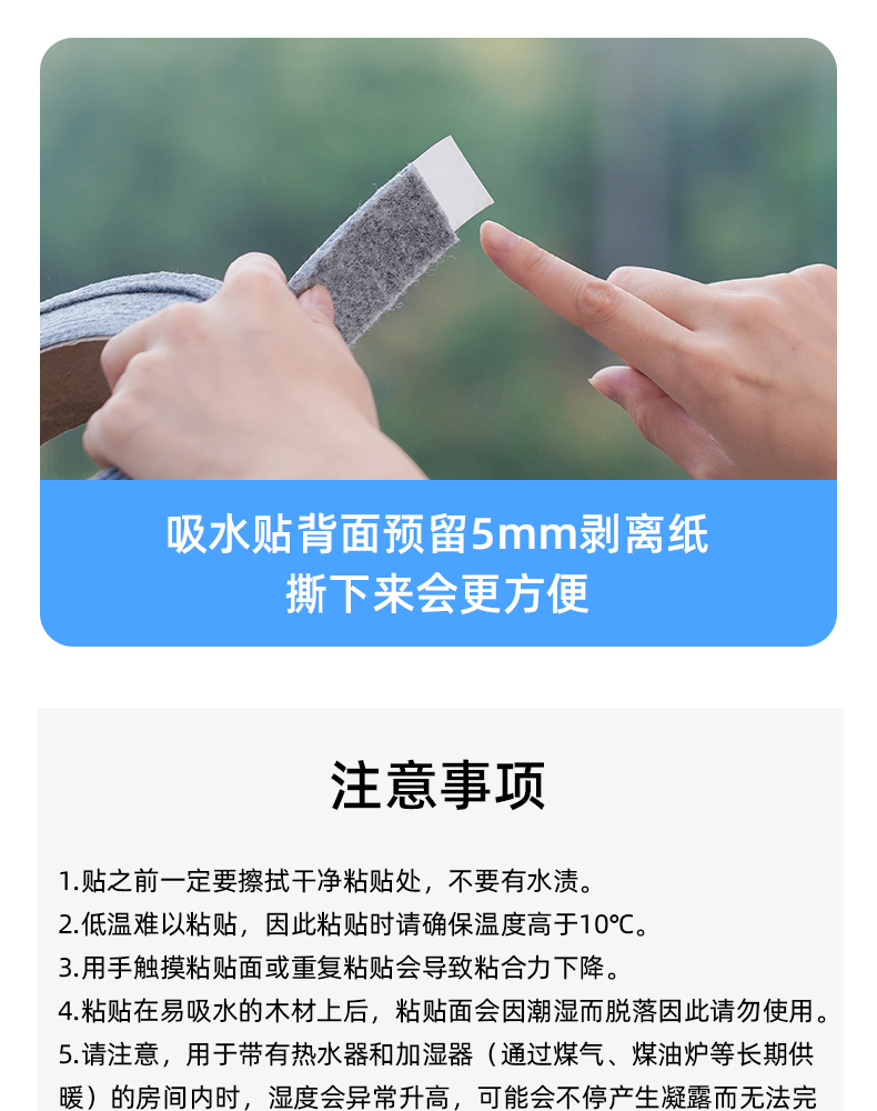 窗户玻璃吸水贴(3cm*4m) 窗户玻璃吸水贴加厚防冷凝水海绵条飘窗台淌水结露神器
