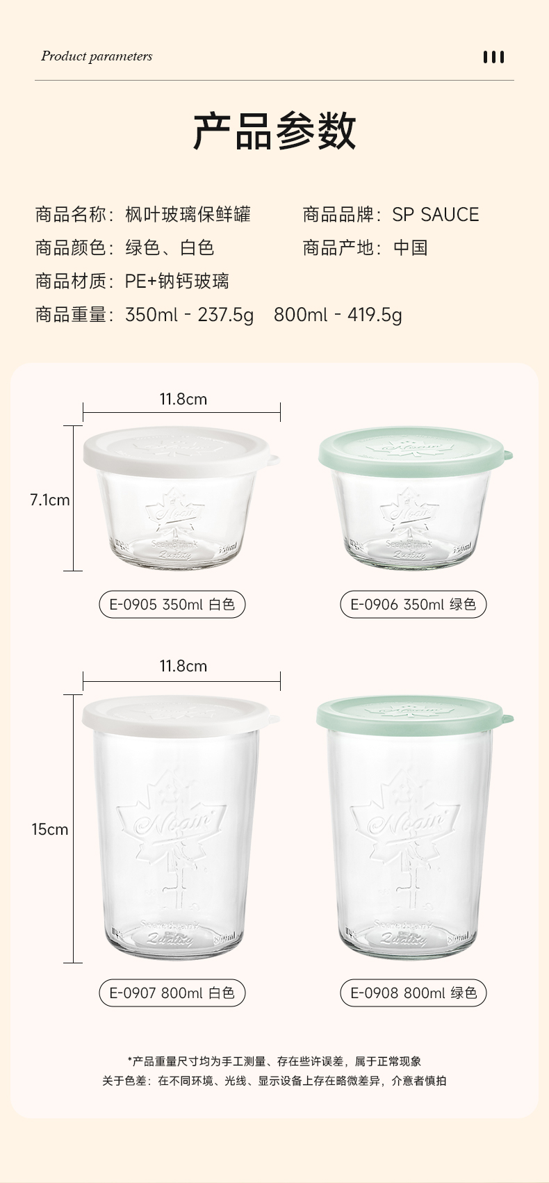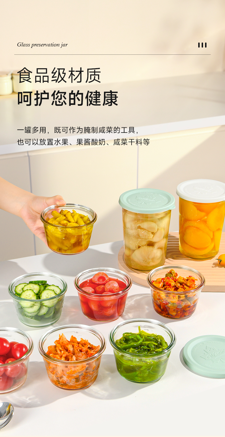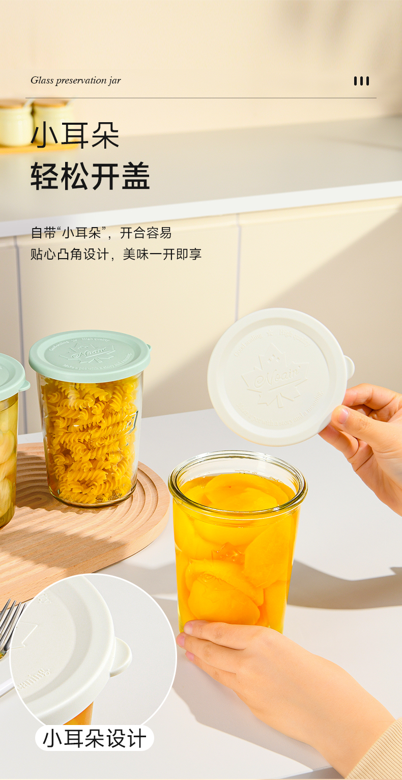 枫叶玻璃保鲜罐(800ml) 玻璃密封罐家用食品级保鲜盒水果泡菜收纳盒保鲜储物罐冷藏保鲜碗