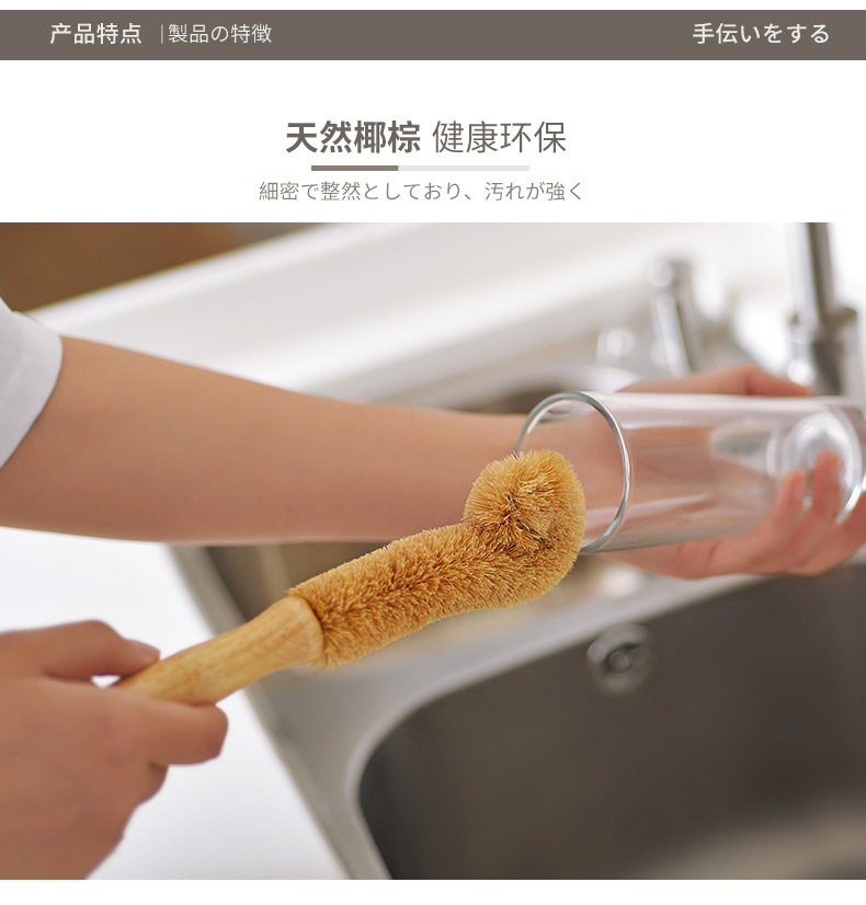 天然椰棕杯刷 天然椰棕洗杯刷奶瓶刷子长柄厨房洗杯子刷子玻璃杯清洁刷子
