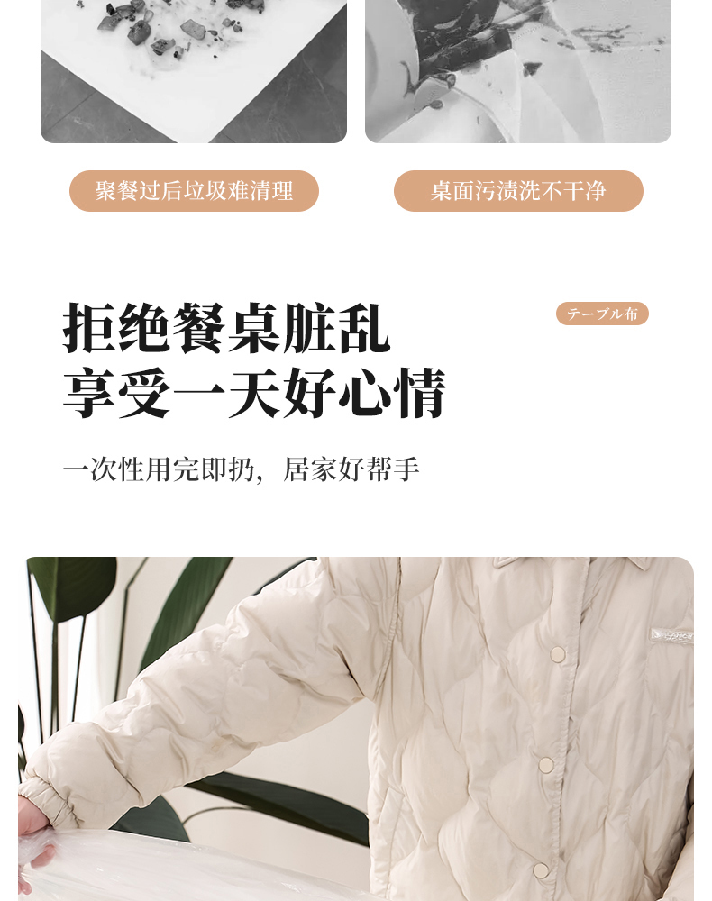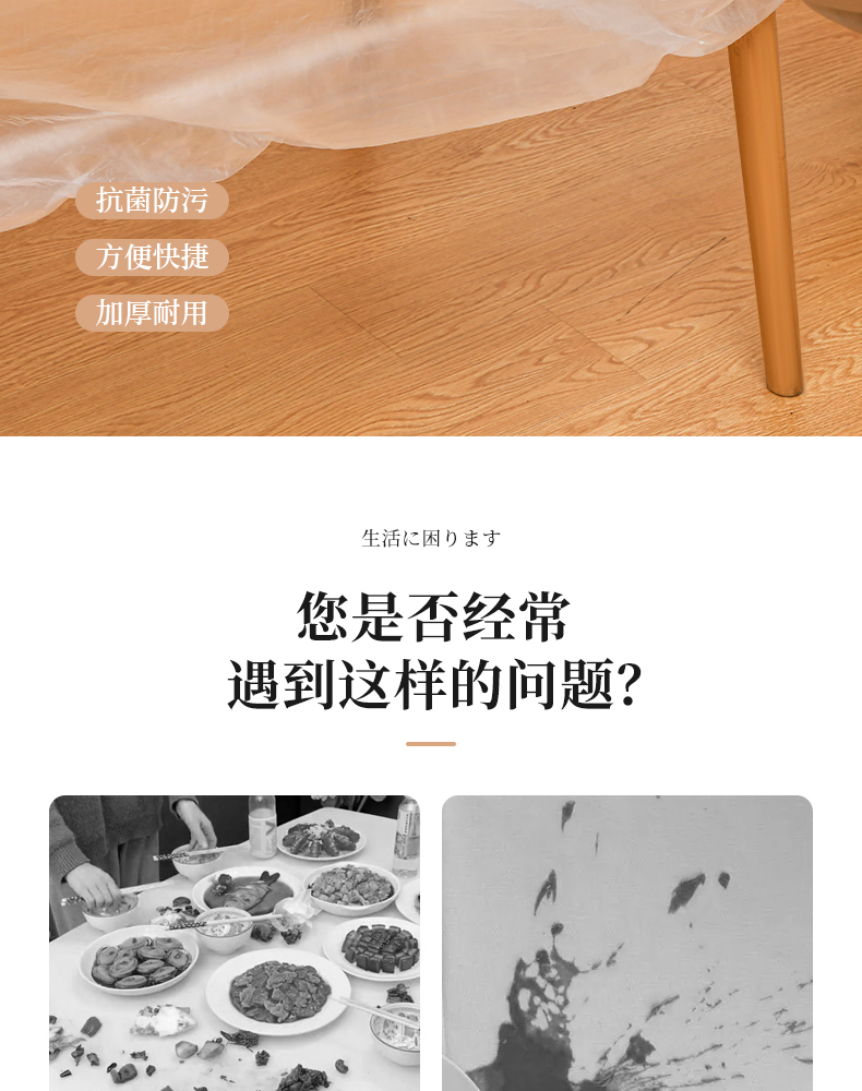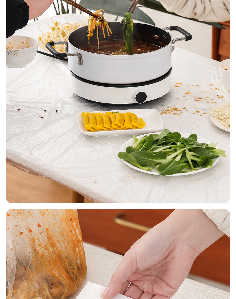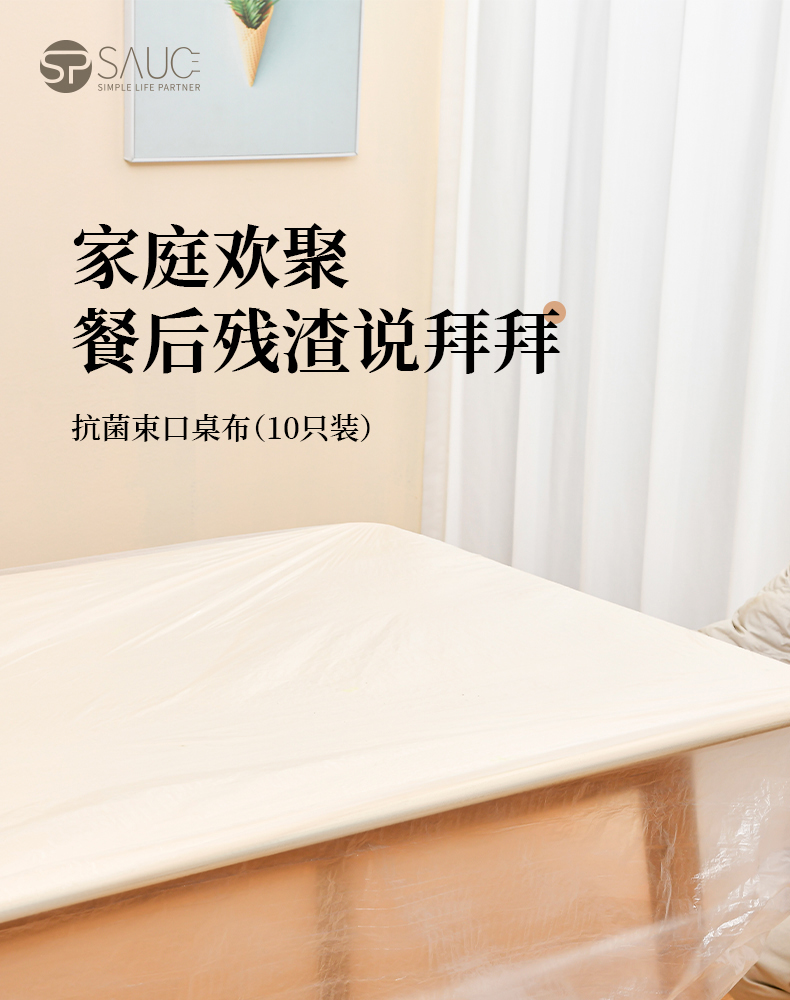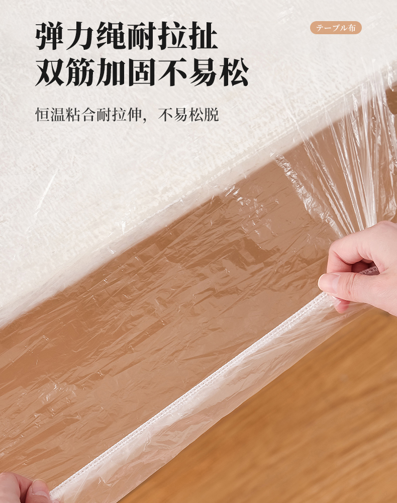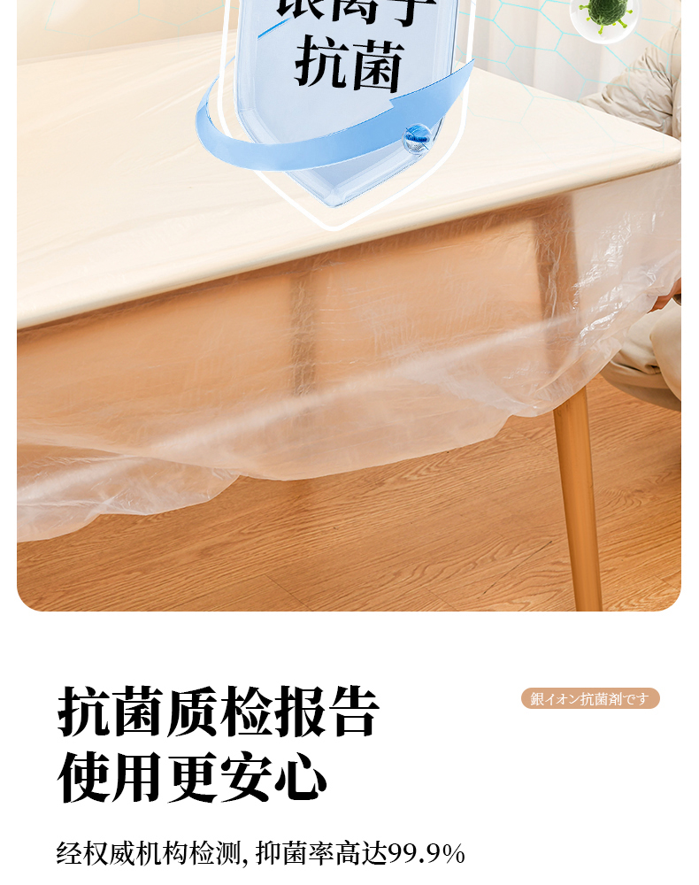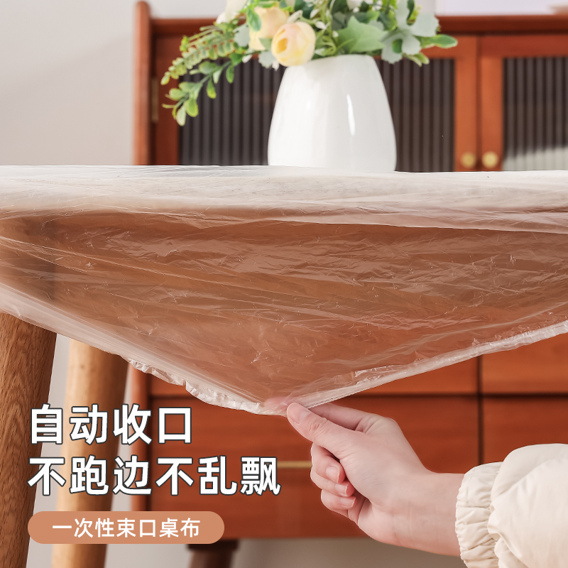 抗菌束口桌布(10枚入) 抗菌一次性束口桌布带松紧带防水防油免洗加厚食品级聚餐酒席塑料膜PE桌布