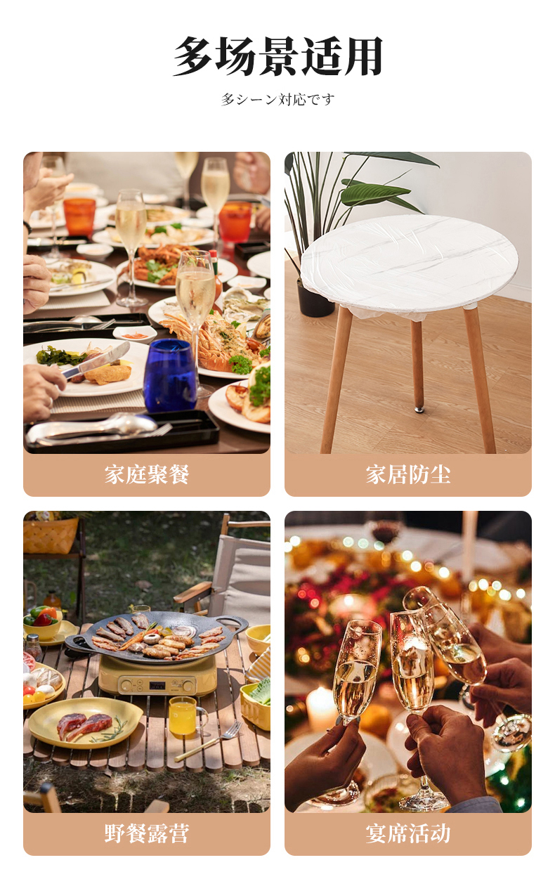 D抗菌束口桌布(10枚入) 抗菌一次性束口桌布带松紧带防水防油免洗加厚食品级聚餐酒席塑料膜PE桌布