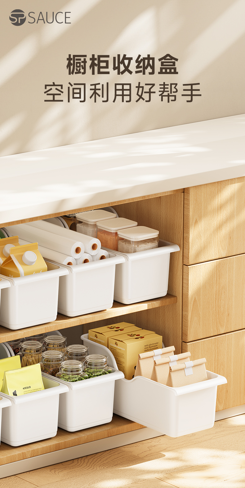 橱柜收纳盒 厨房收纳盒调料品置物架家用多功能橱柜锅具储物收纳架子