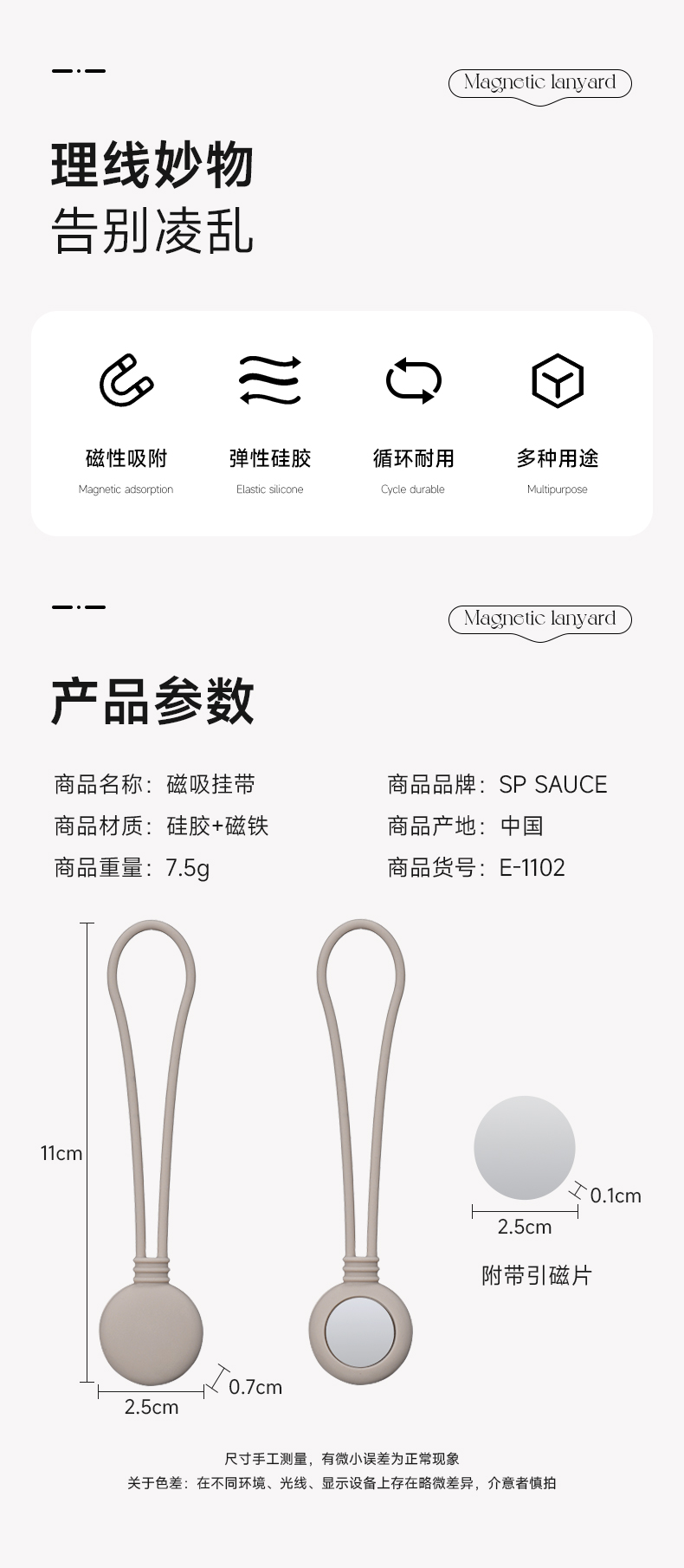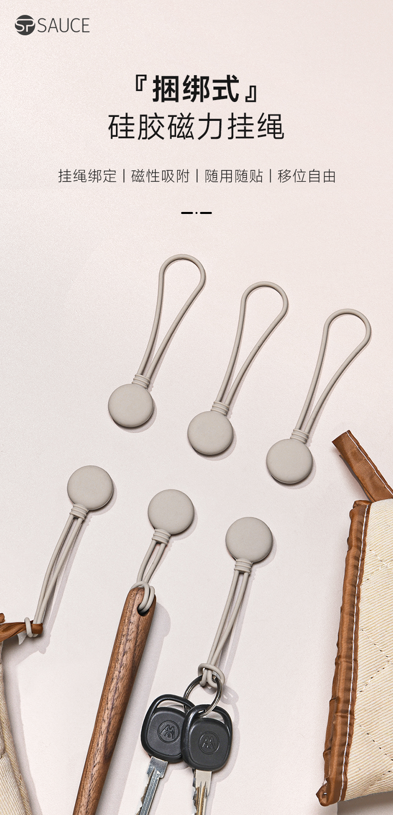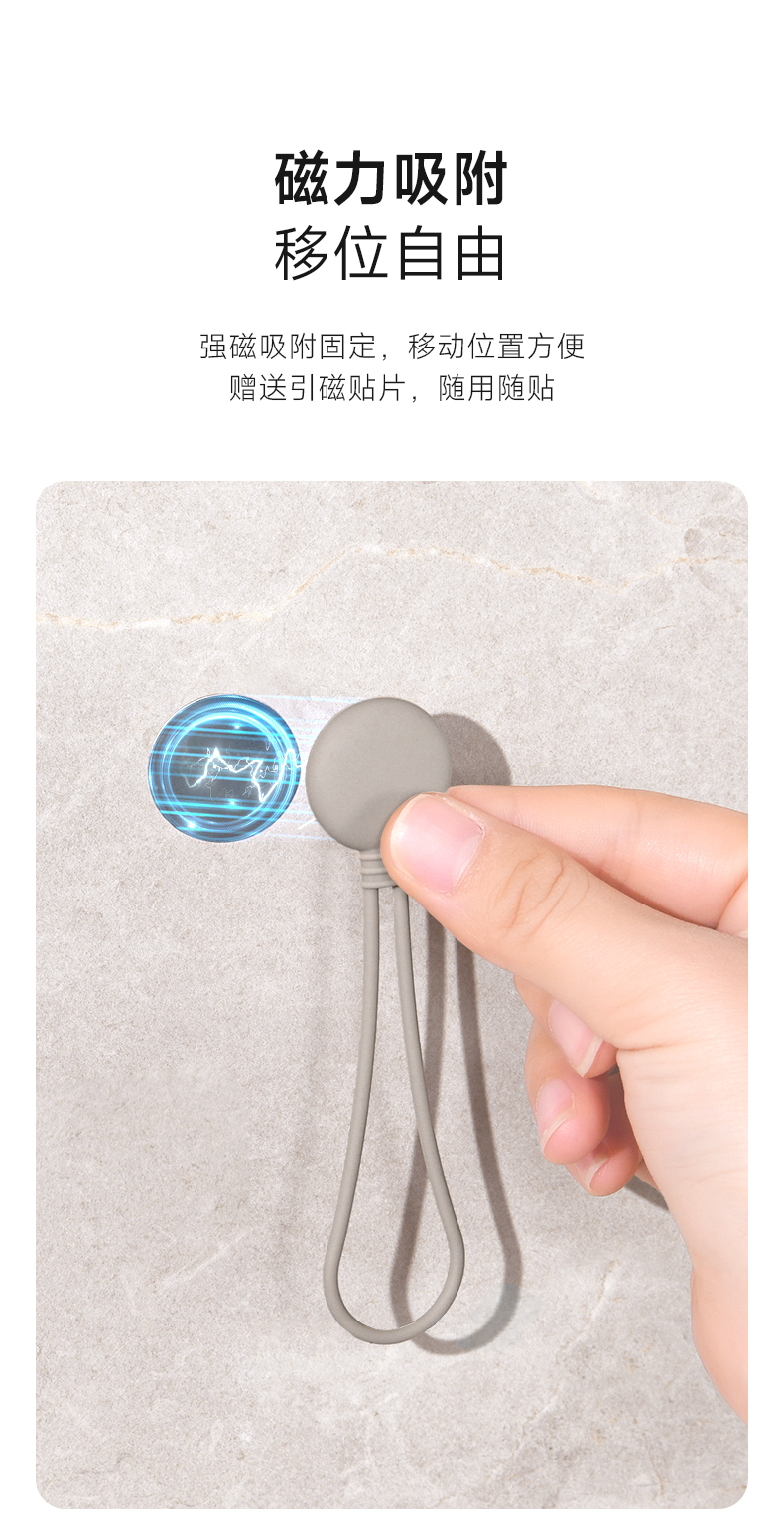 磁吸挂带 捆绑式硅胶磁力挂绳冰箱挂置厨房用品数据线收纳磁吸附无痕免打孔