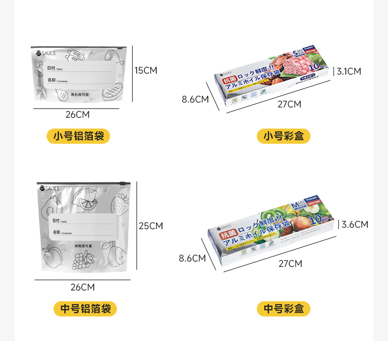 铝箔抗菌保鲜袋大号(10只入) 铝箔抗菌保鲜袋冰箱冷冻密封袋自封袋拉链式食品级封口分装袋