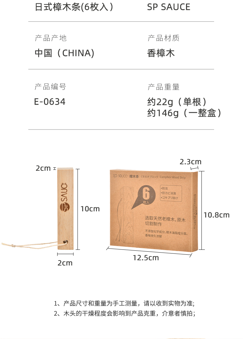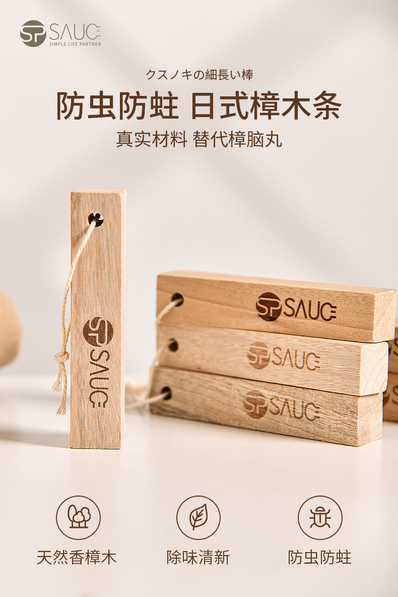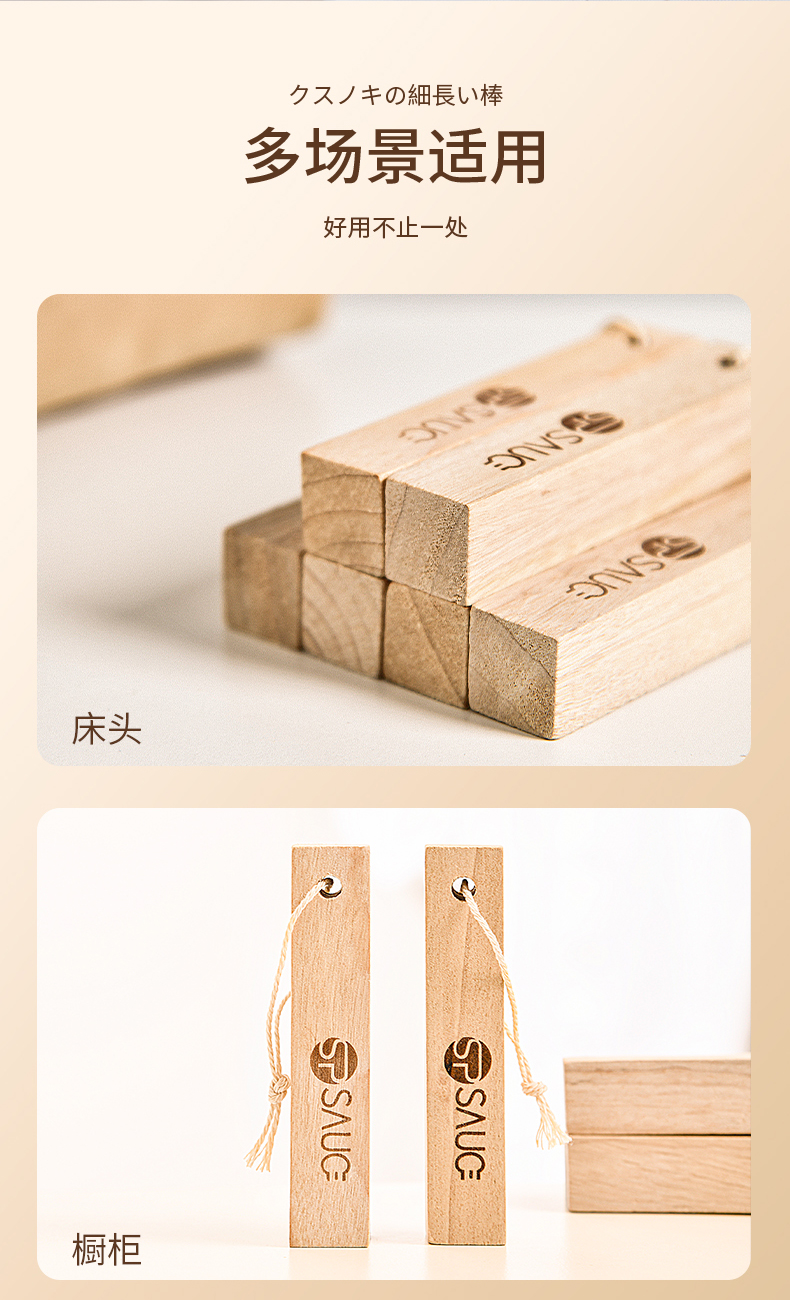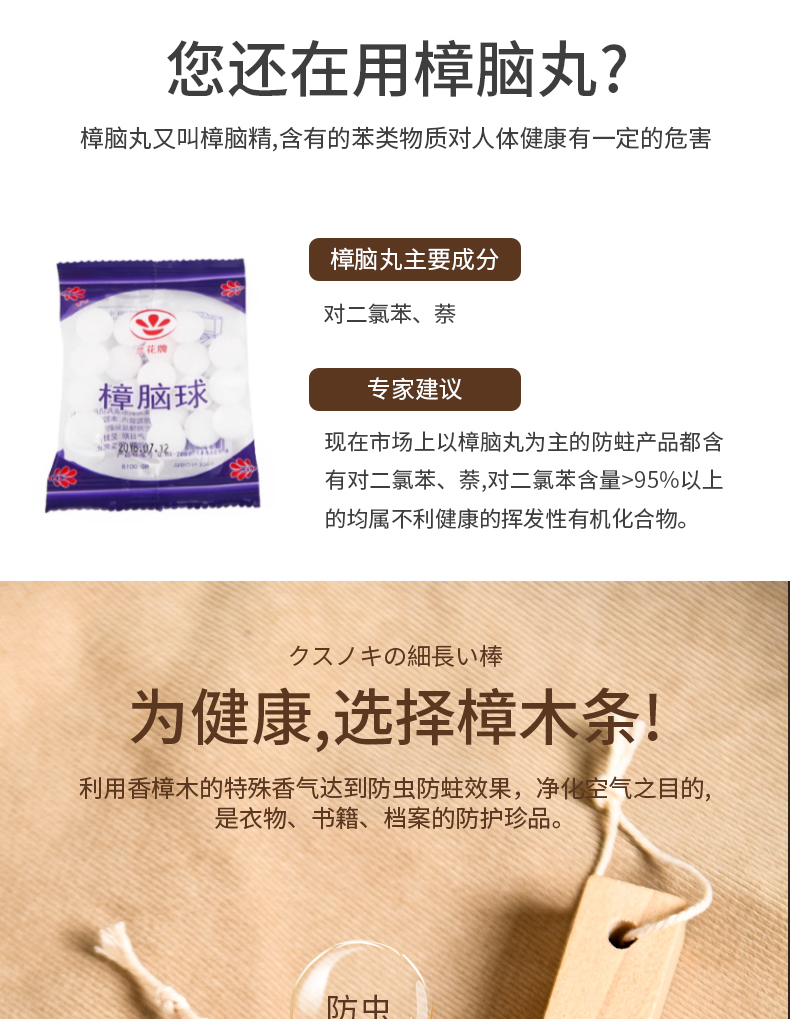 日式樟木条(6条装) 日式樟木条家用衣柜防蟑螂防虫驱虫防潮防霉樟脑丸樟木块
