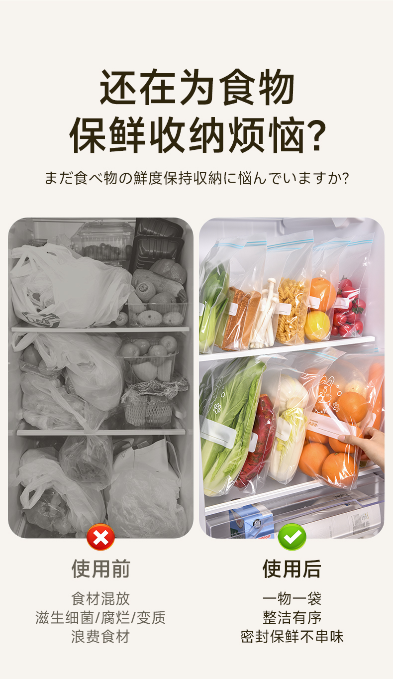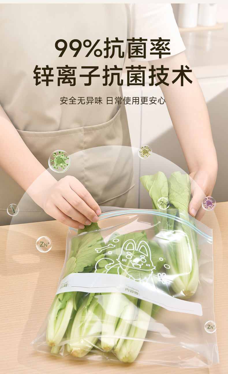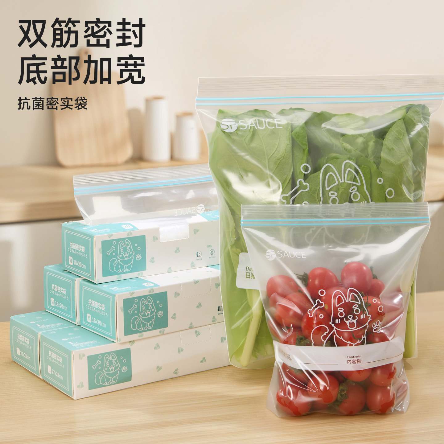 抗菌密实袋中号(30只入) 抗菌密封袋保鲜食品包装袋密实袋家用加厚冰箱收纳冷冻解冻专用分装袋滑锁袋