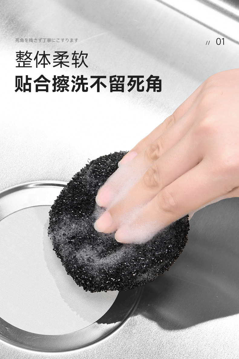 水槽清洁棉(圆形) 水垢清洁擦浴室洗手台厨房水槽水龙头花洒海绵魔力擦去污除垢神器