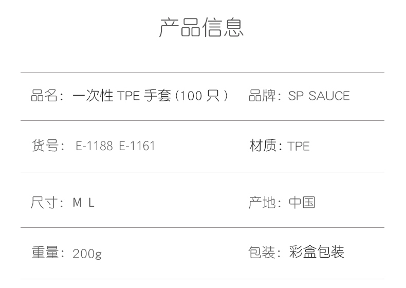 一次性TPE手套(100只入) 一次性手套餐饮厨房美容TPE塑料薄膜手套食品级TPE手套100只盒装
