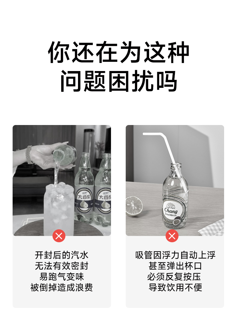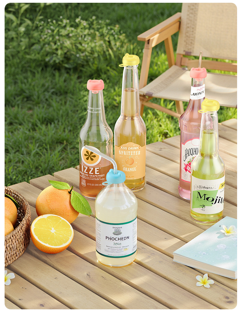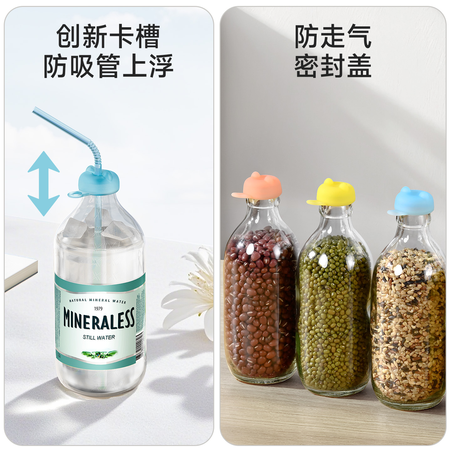 汽水瓶盖(插管+密封) 汽水瓶盖食品级硅胶防漏盖聚会饮料酒瓶通用防尘塞吸管密封切换