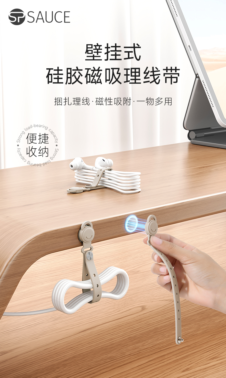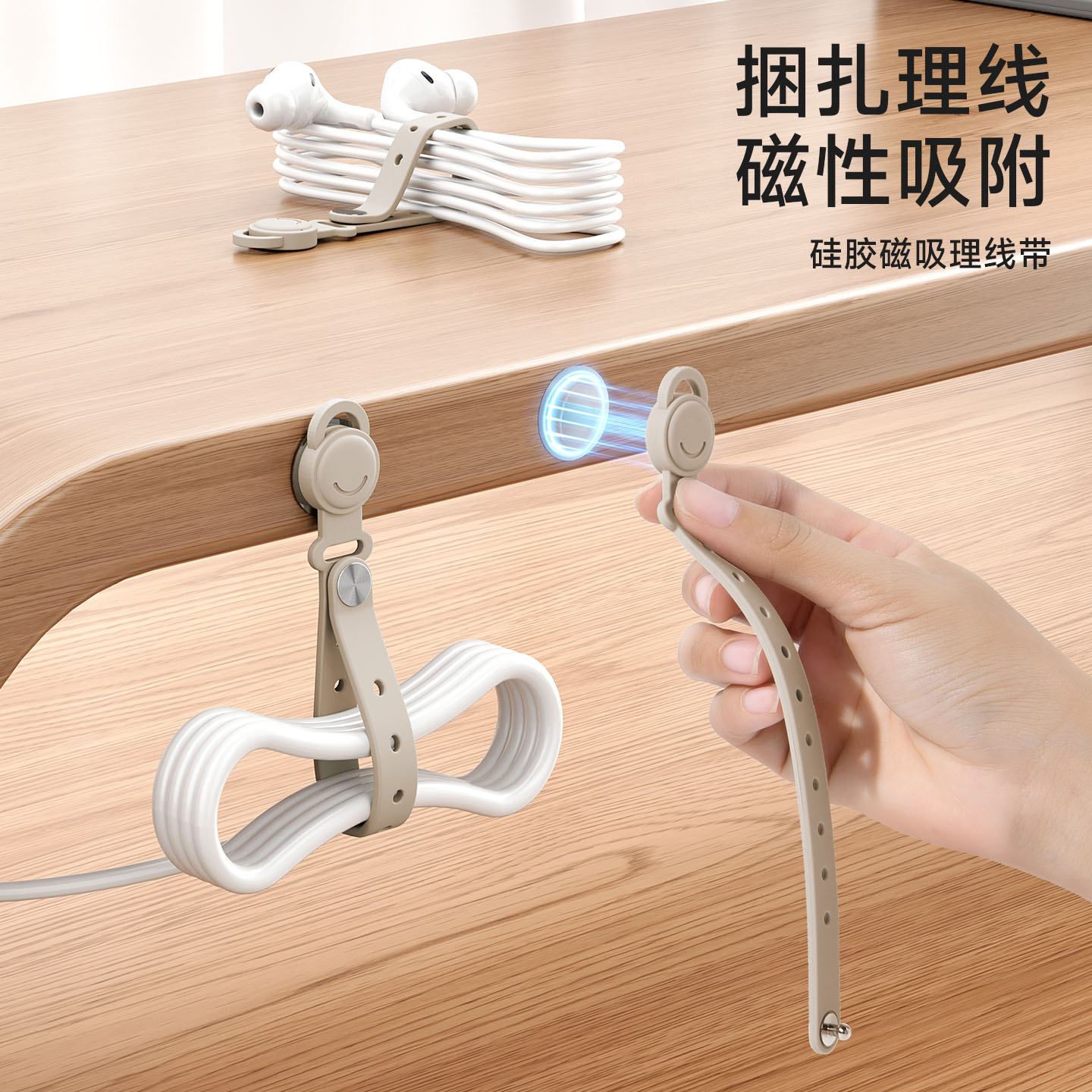 壁挂硅胶磁吸理线带 多功能壁挂式硅胶磁吸理线带数据线收纳挂线器固定器卡扣墙上整理