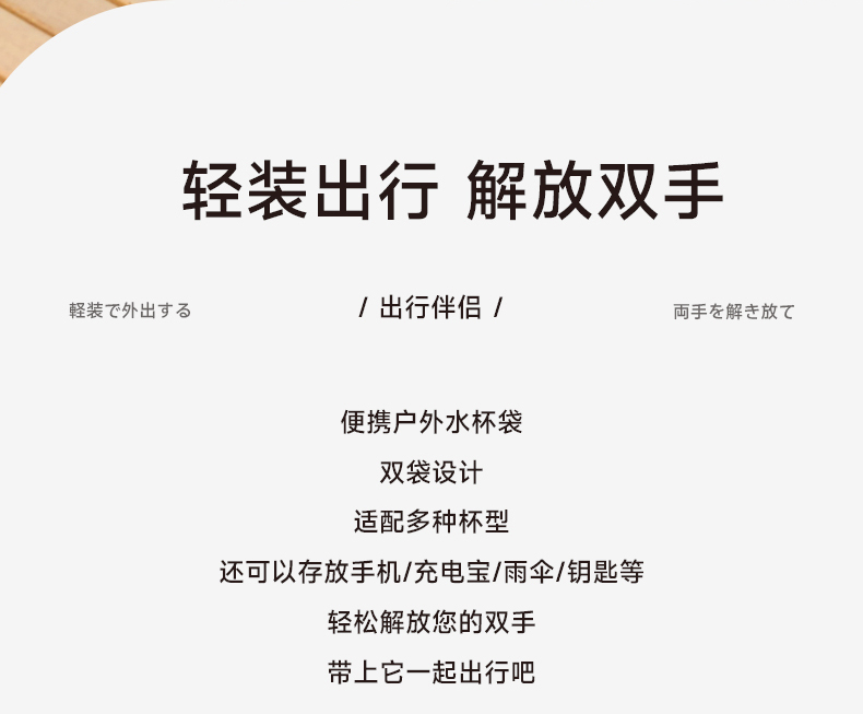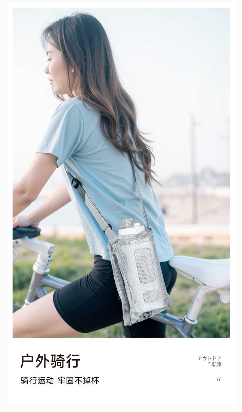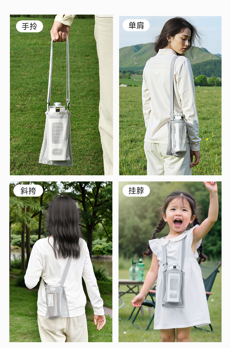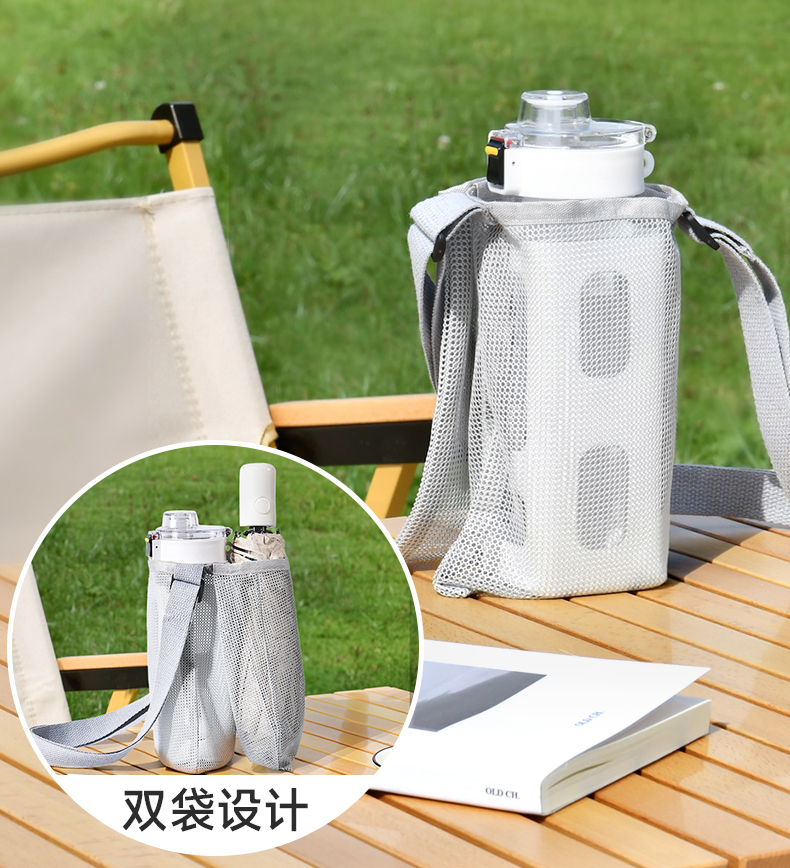 多功能双层水杯袋 多功能双层饮料瓶背带保温杯套斜挎便携手拎水壶包焖烧杯保护套通用大号手提水杯收纳袋