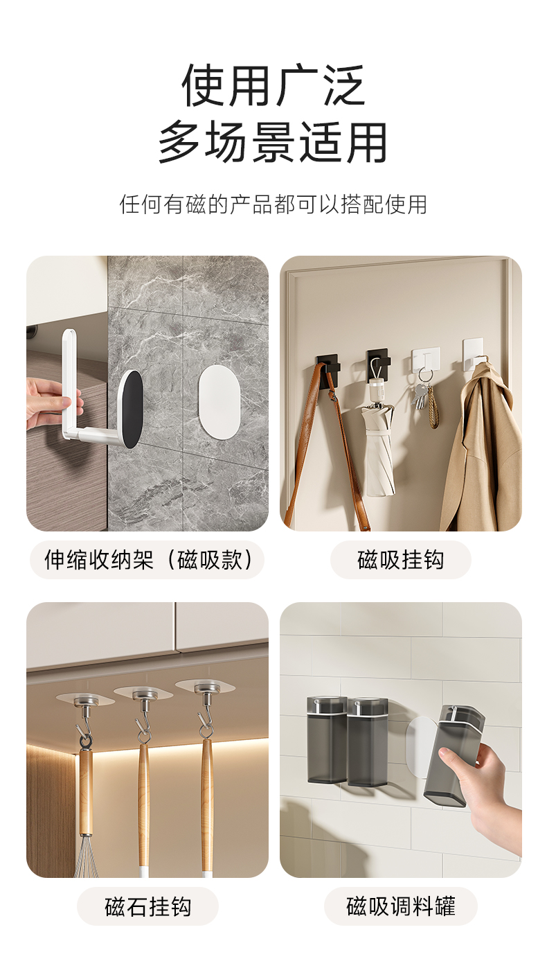 冰箱伸缩收纳架(磁吸款)两个装 冰箱磁吸置物架侧面收纳神器强力磁贴壁挂保鲜膜厨房 纸巾挂架