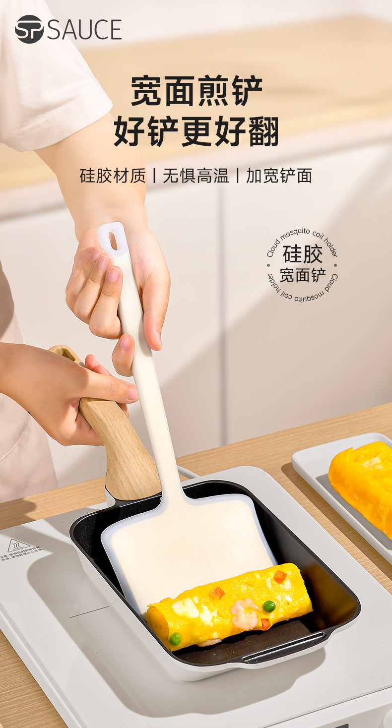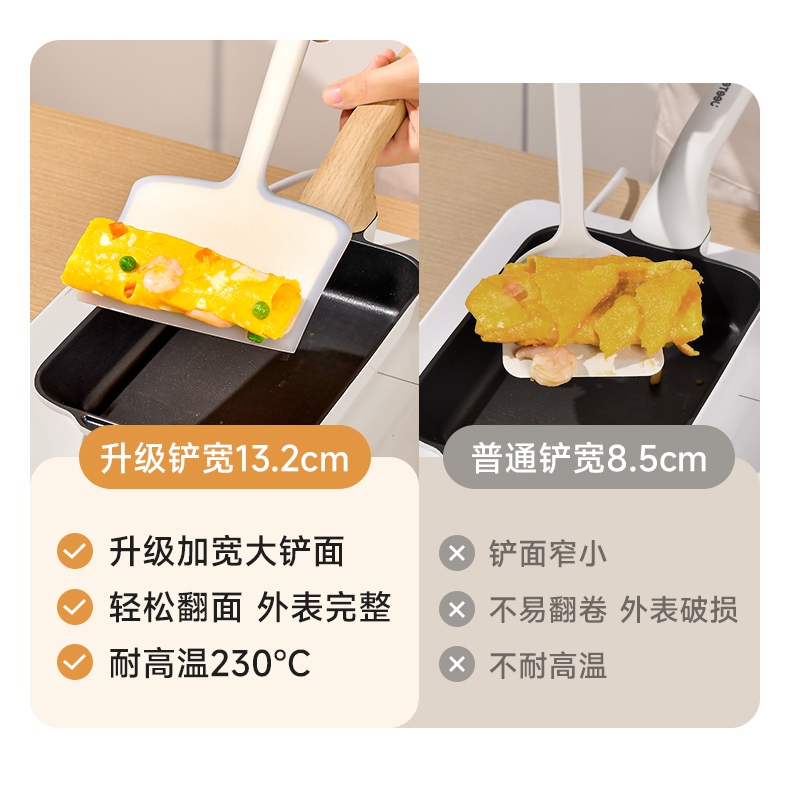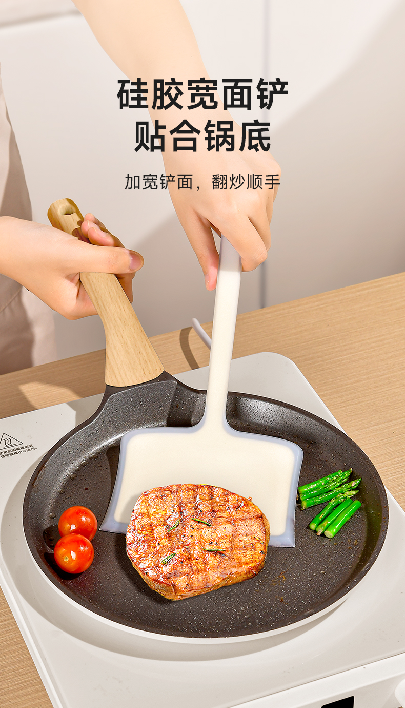 双色硅胶宽面铲 煎饼铲子烙饼专用硅胶铲食品级耐高温锅铲家用玉子烧煎蛋煎铲