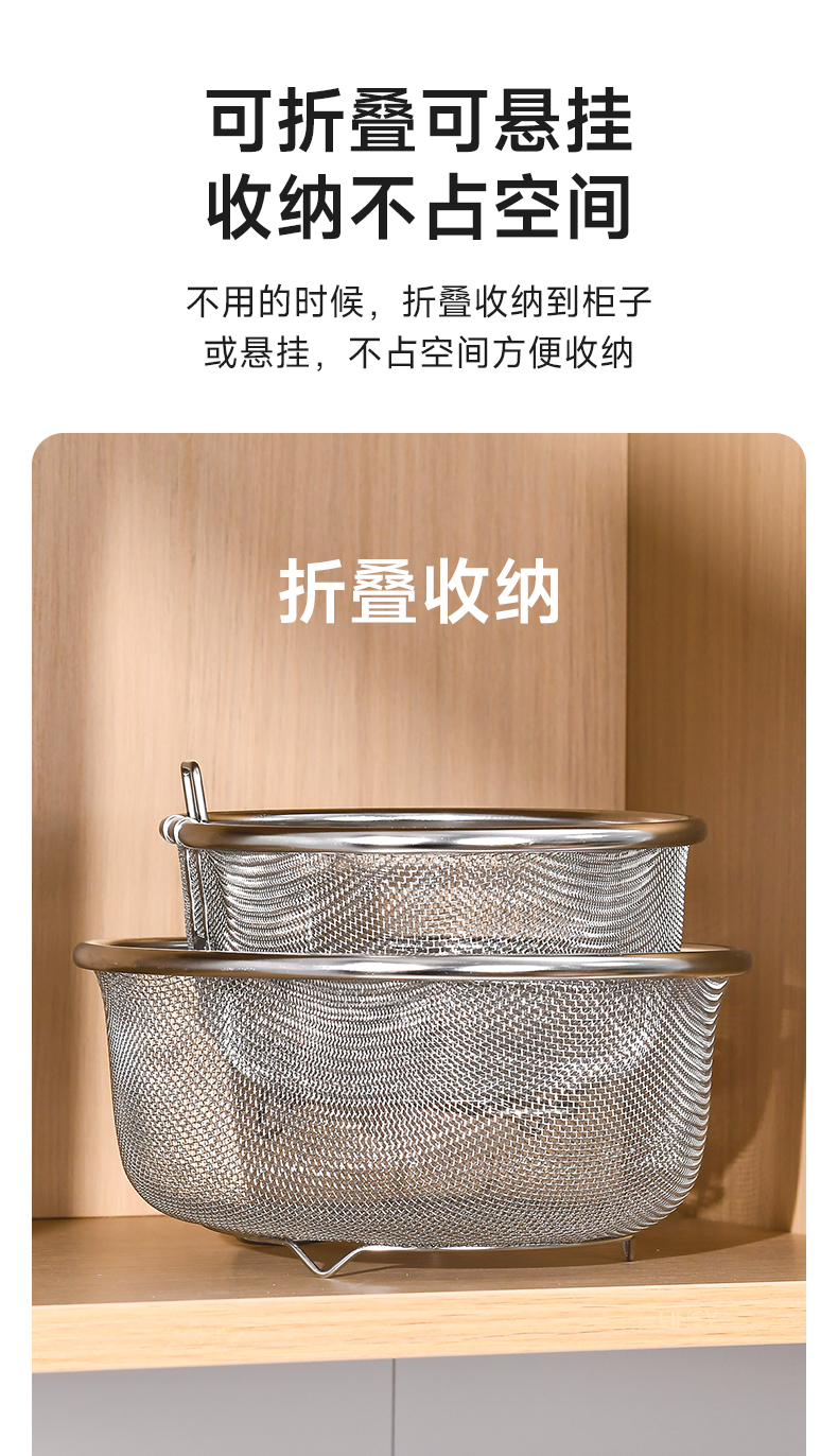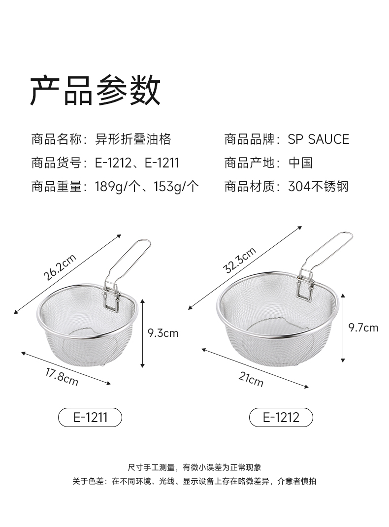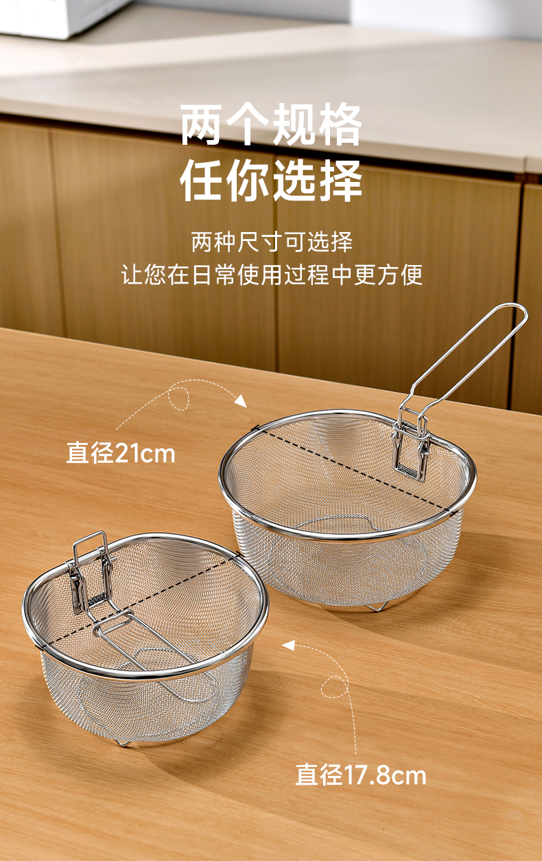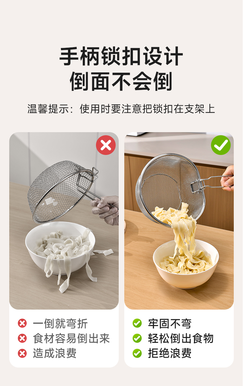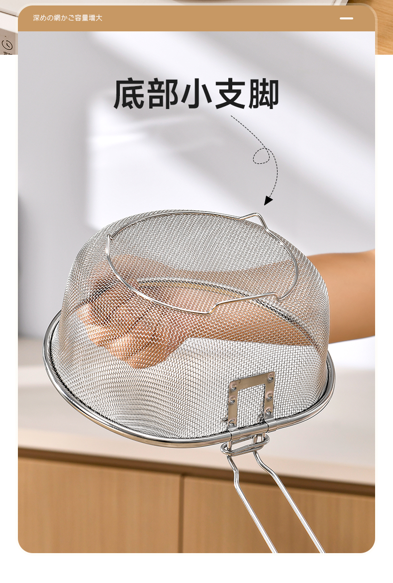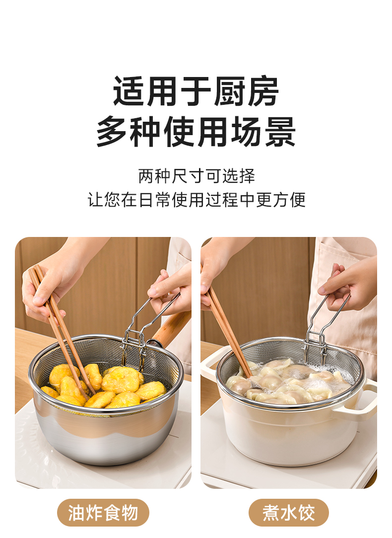 异形折叠油格21cm 不锈钢可折叠油格家用火锅漏勺厨房漏网过滤网多功能捞面条勺油炸漏筛