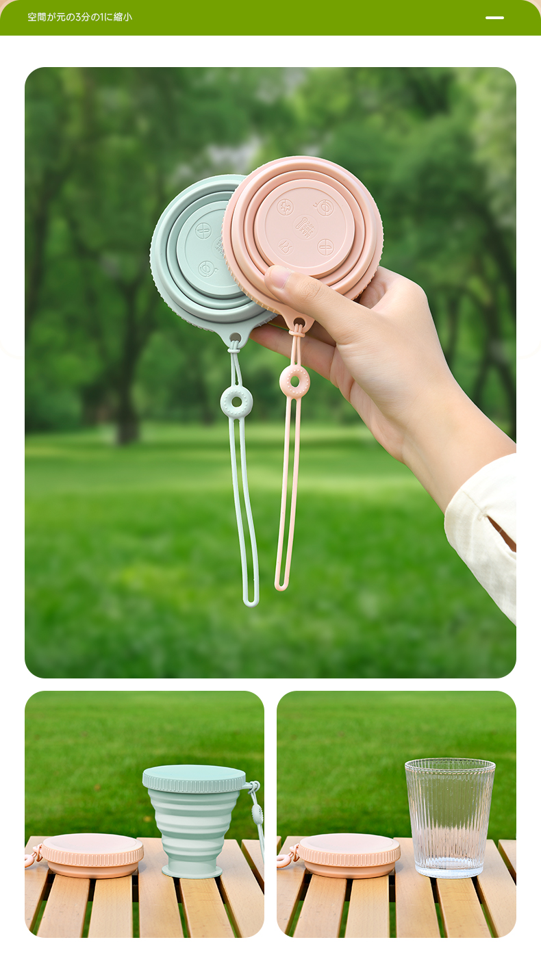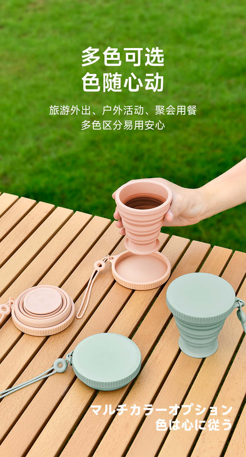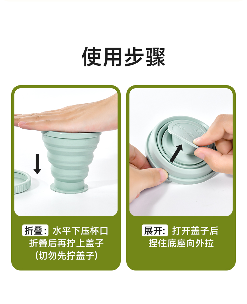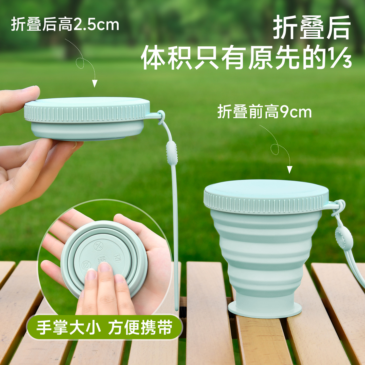 硅胶折叠杯 可折叠杯硅胶户外露营带盖压缩水杯便携可伸缩漱口杯