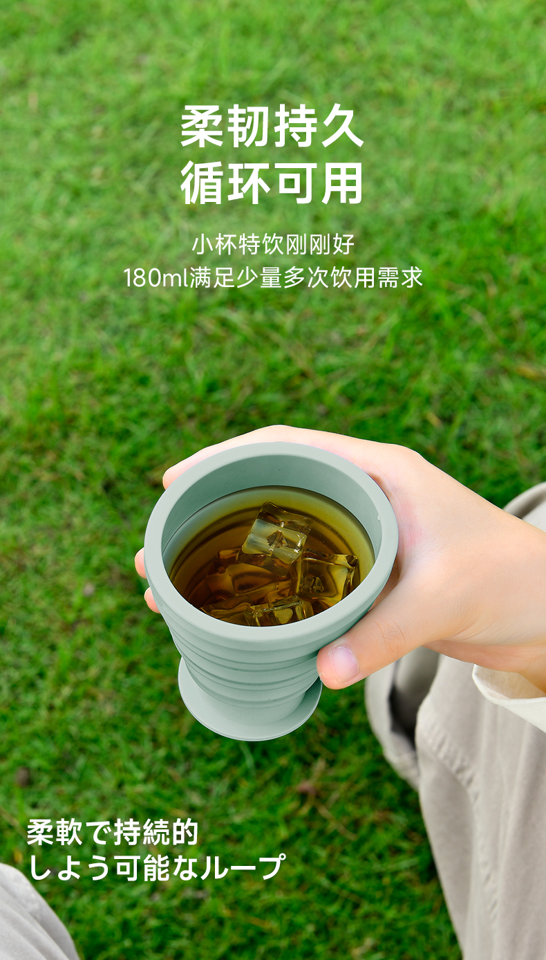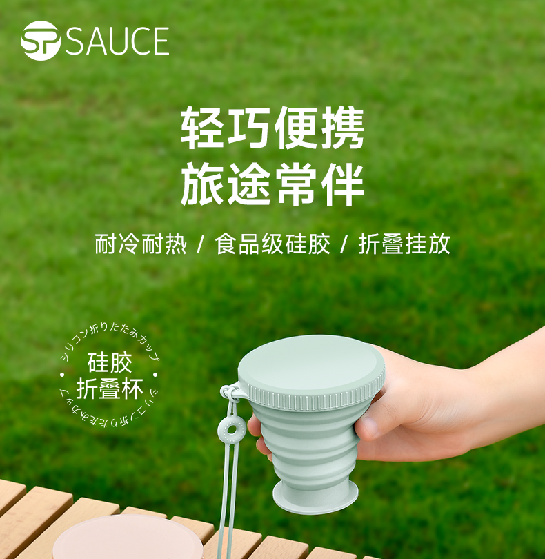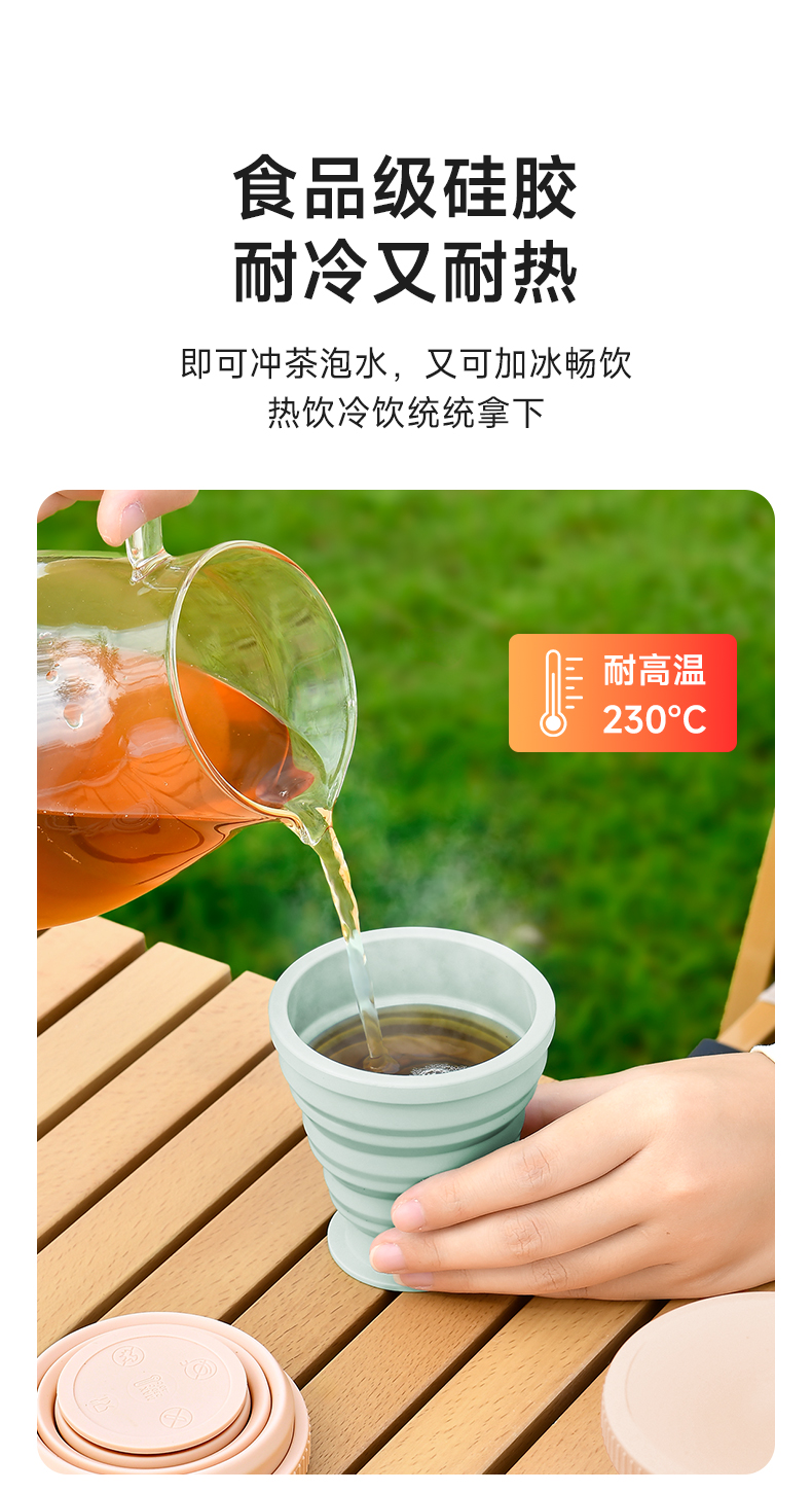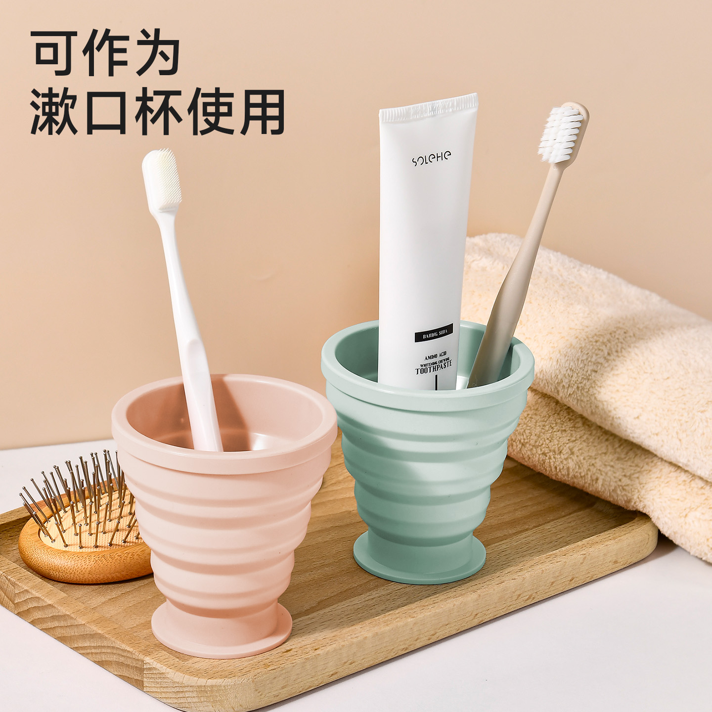 硅胶折叠杯 可折叠杯硅胶户外露营带盖压缩水杯便携可伸缩漱口杯