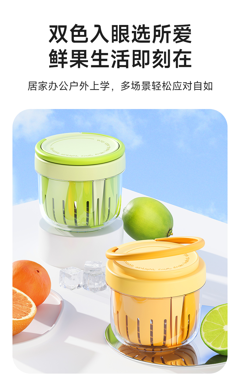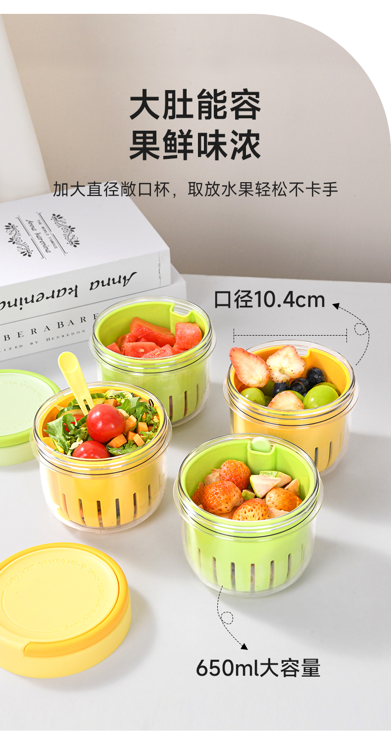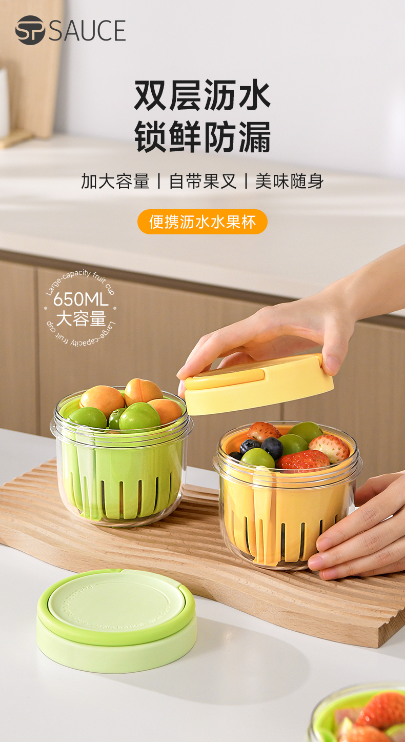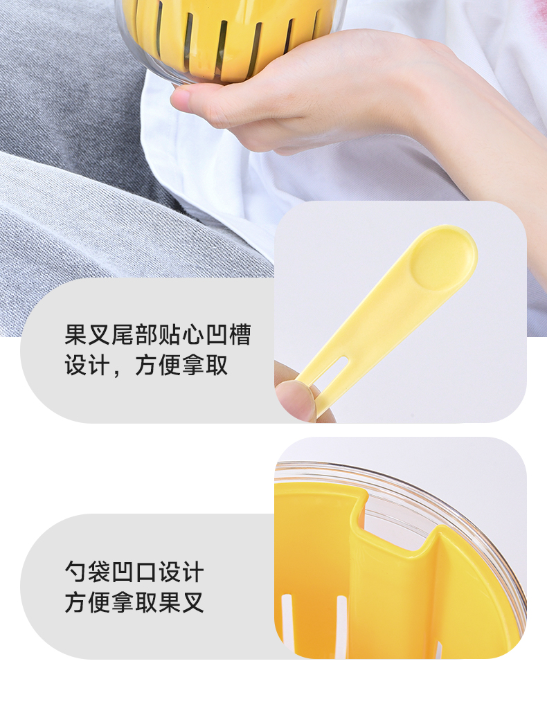 便携沥水水果杯 水果杯便携式外出带叉盒可沥水食品级高颜值防尘密封