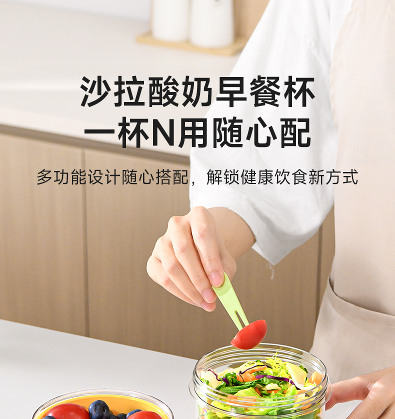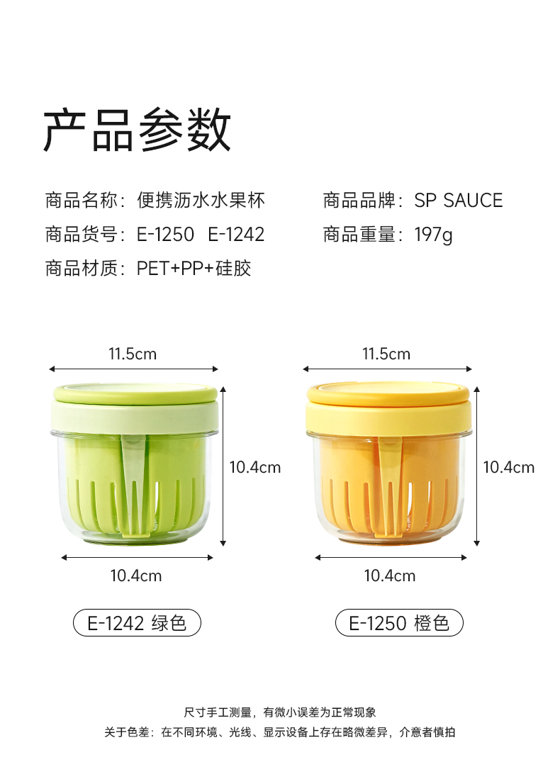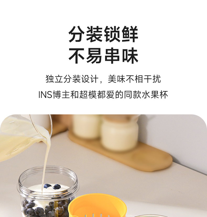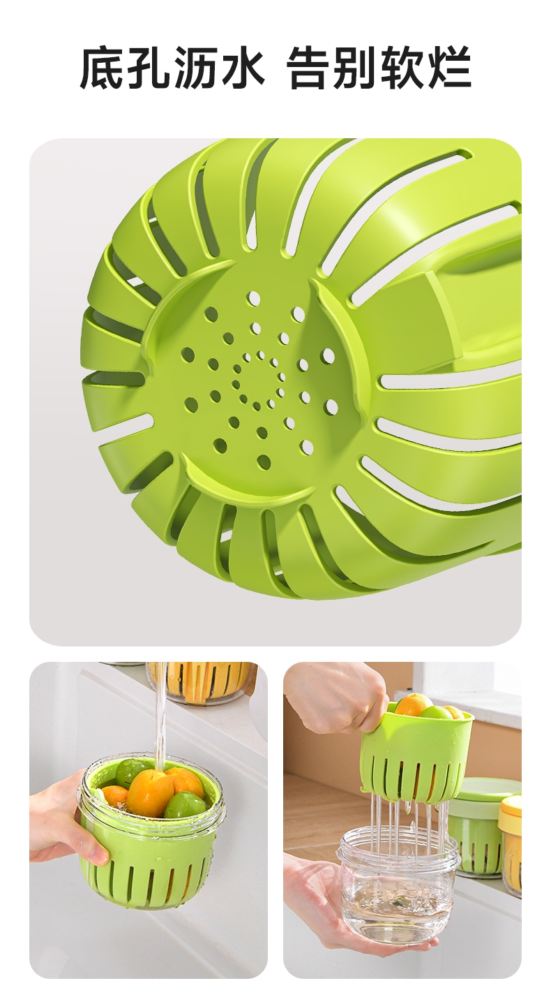 便携沥水水果杯 水果杯便携式外出带叉盒可沥水食品级高颜值防尘密封