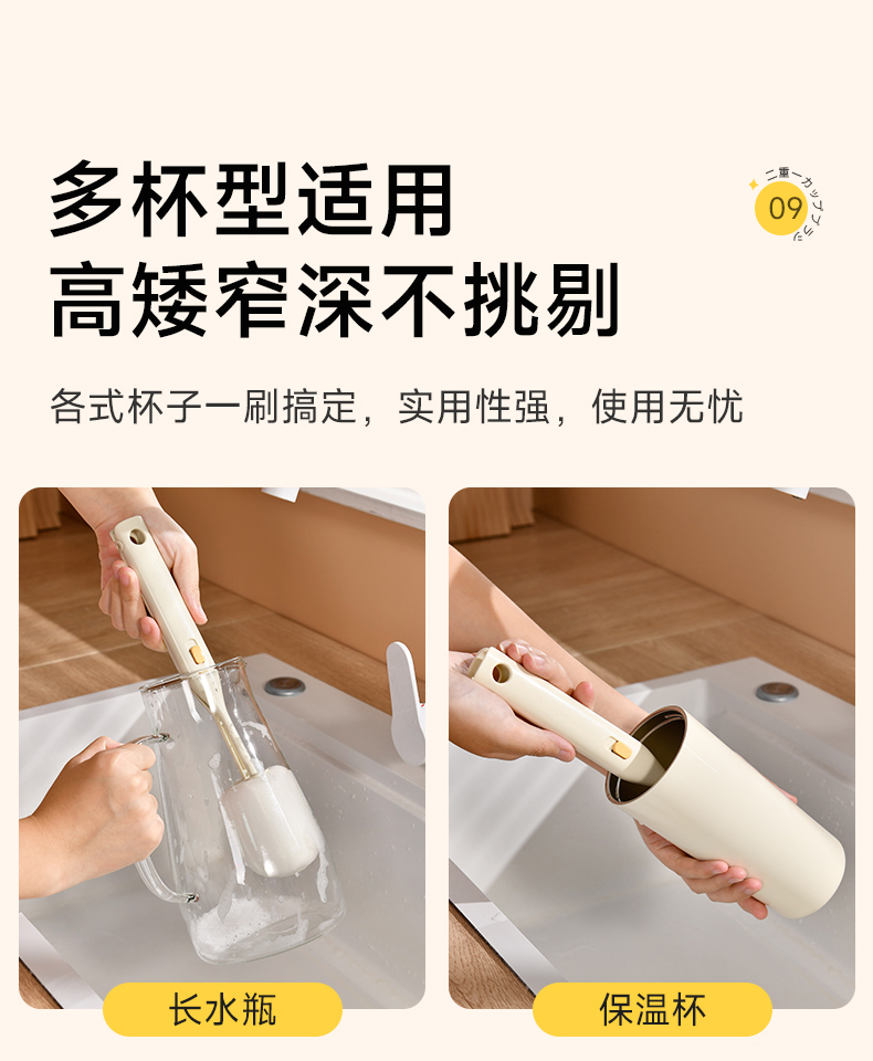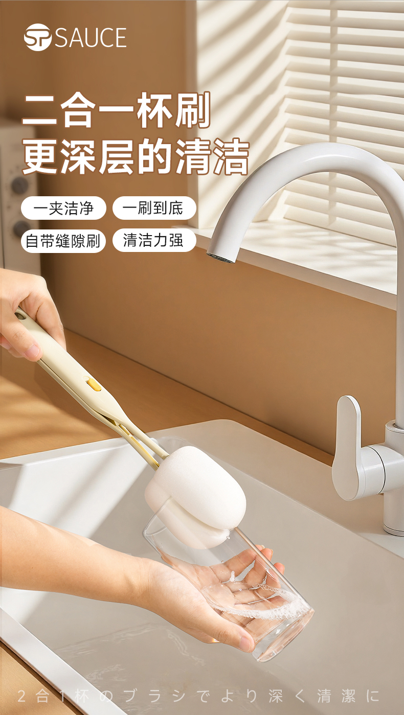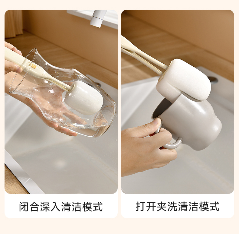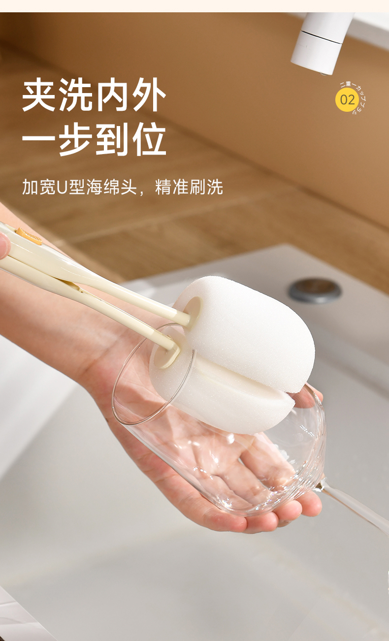二合一杯刷 夹洗杯子神器U型大头海绵清洁刷洗奶瓶水杯无死角长柄刷