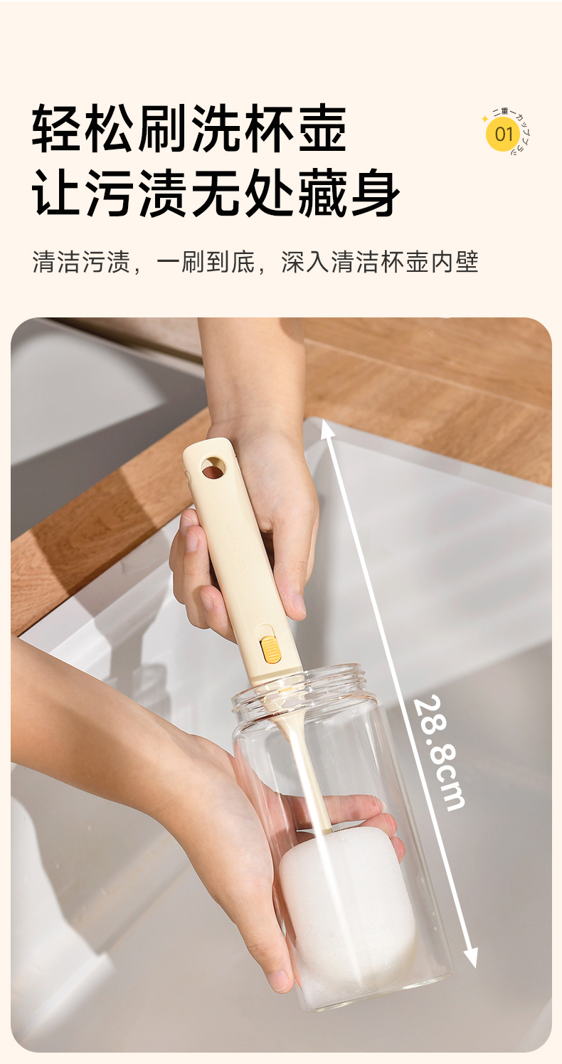 二合一杯刷替换装(一对装) 夹洗杯子神器U型大头海绵清洁刷洗奶瓶水杯无死角长柄刷