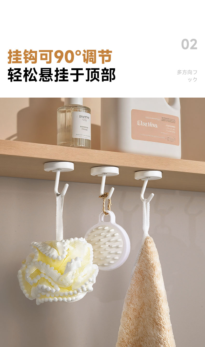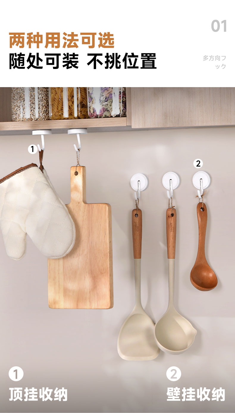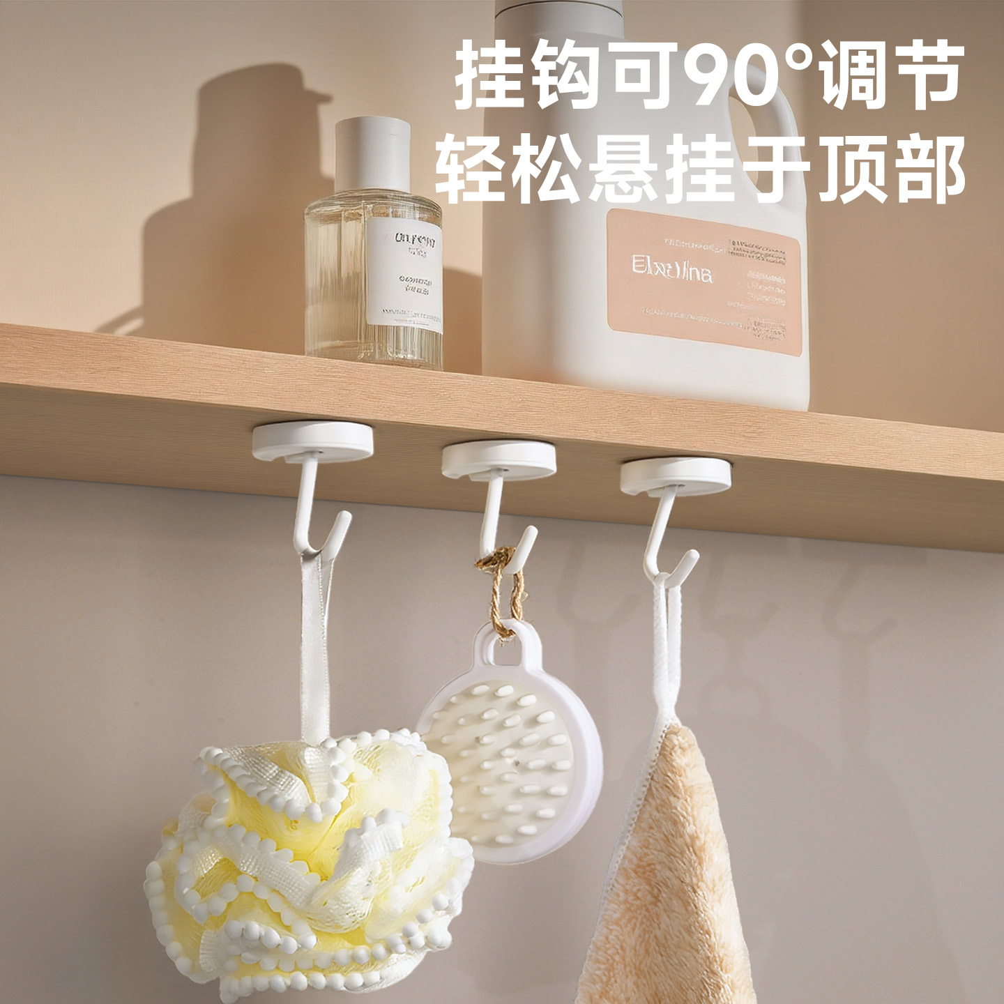 多向挂钩(4只装) 书包挂钩桌边学生宿舍课桌侧收纳钩子免打孔桌下包包钥匙粘钩挂架
