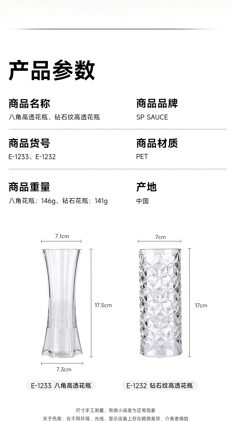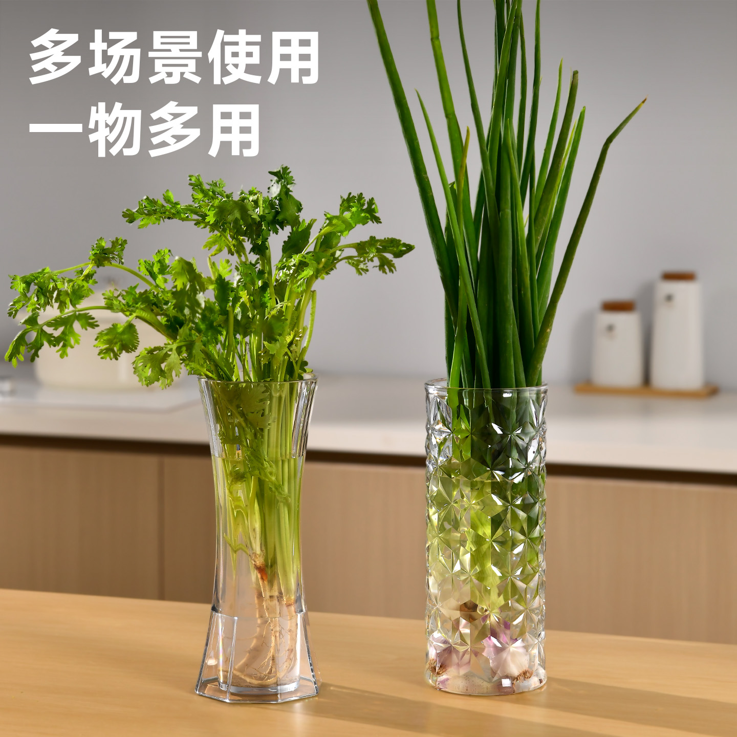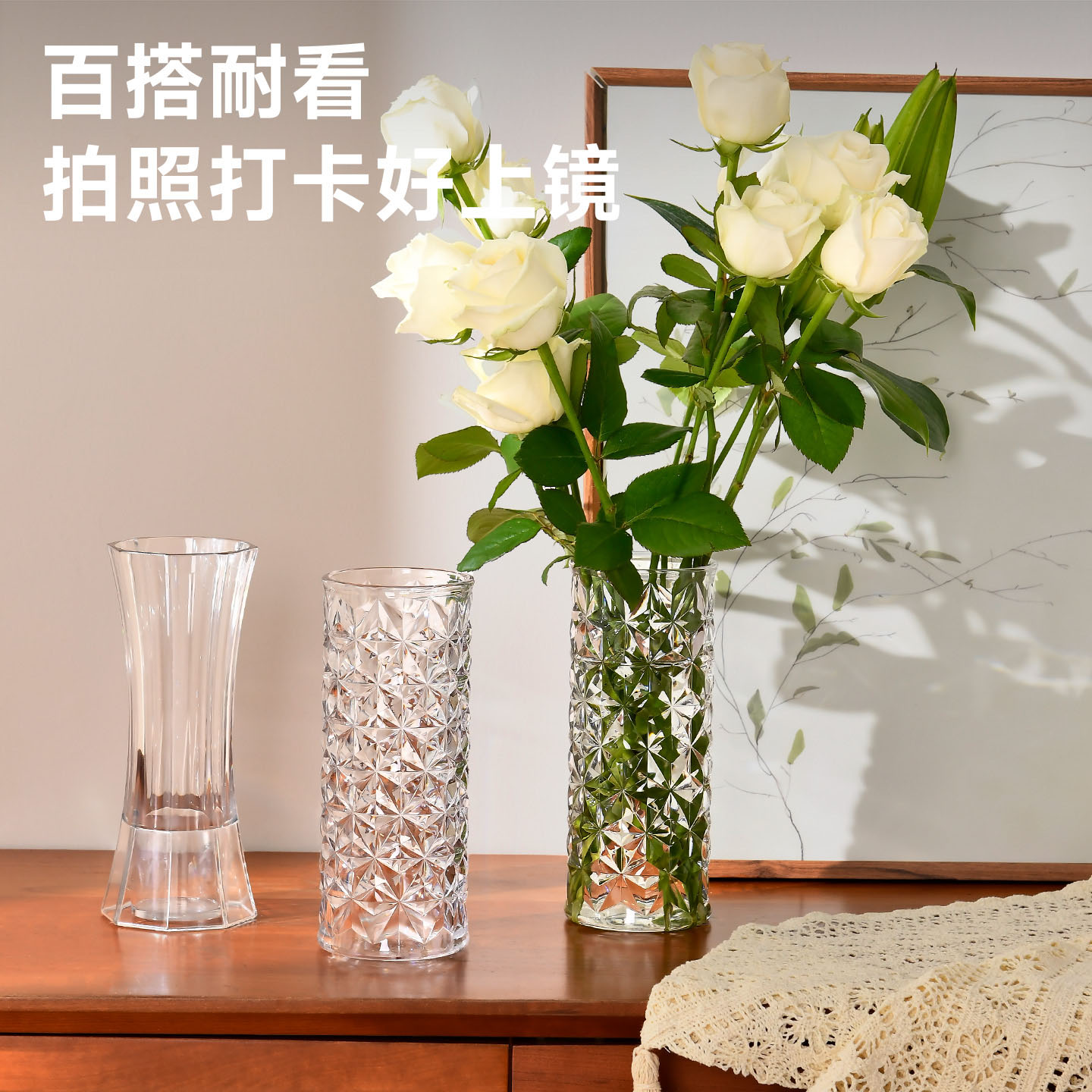 钻石纹高透花瓶 塑料高透防摔花瓶水养水培插花富贵竹透明方形装饰客厅小卧室玄关
