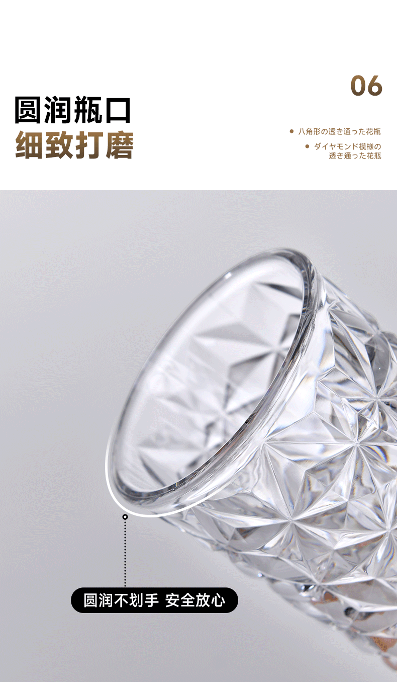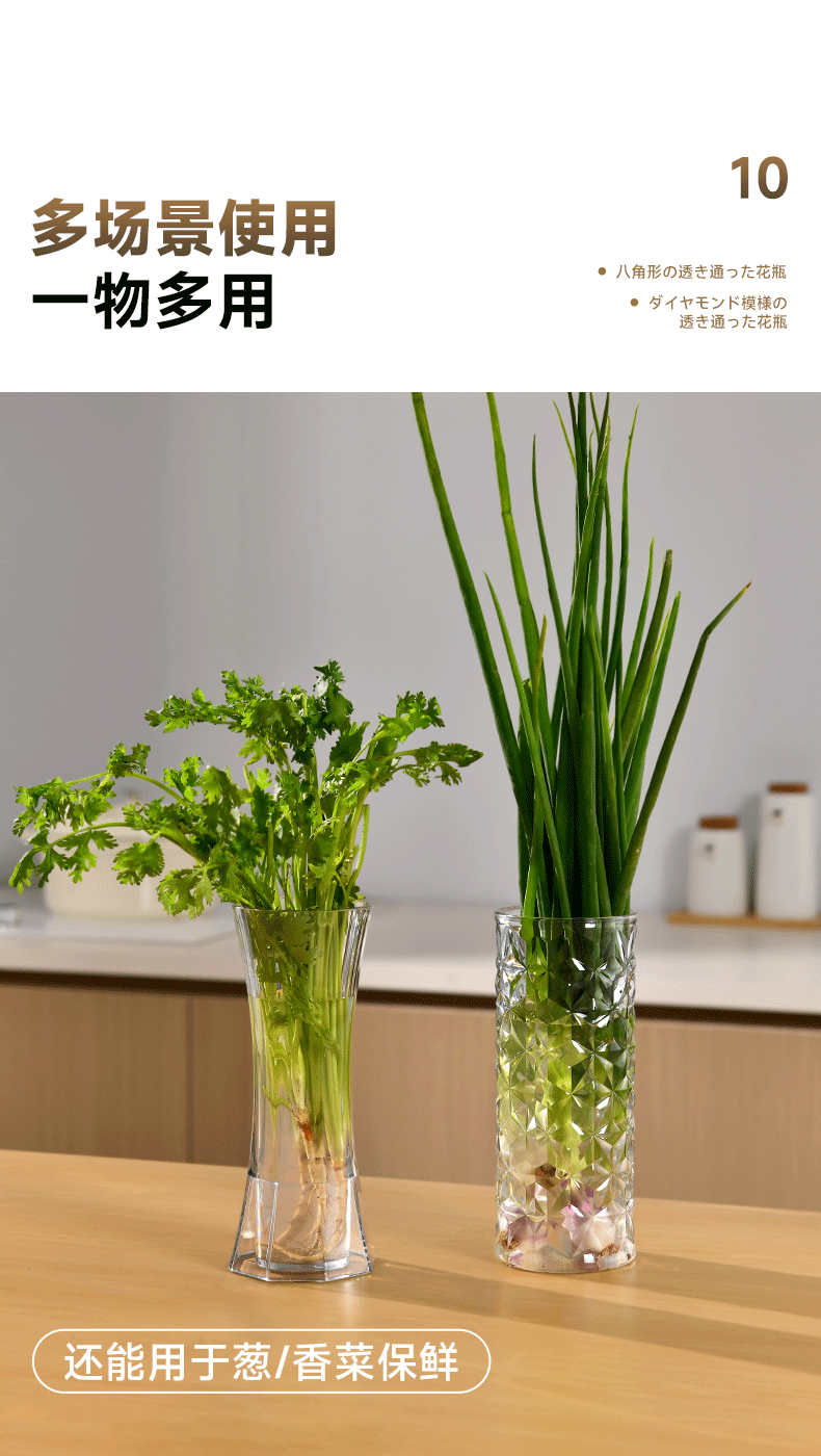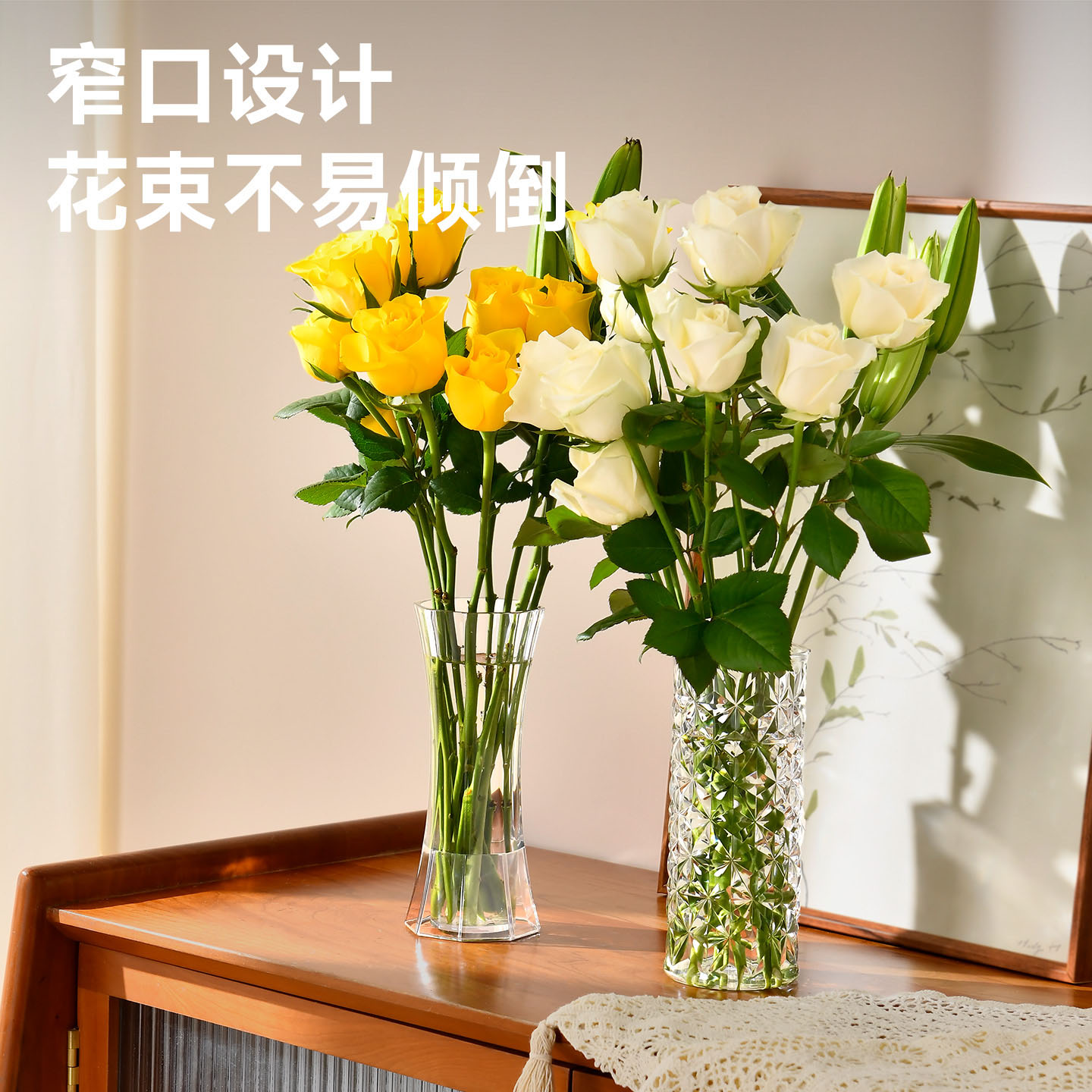 钻石纹高透花瓶 塑料高透防摔花瓶水养水培插花富贵竹透明方形装饰客厅小卧室玄关