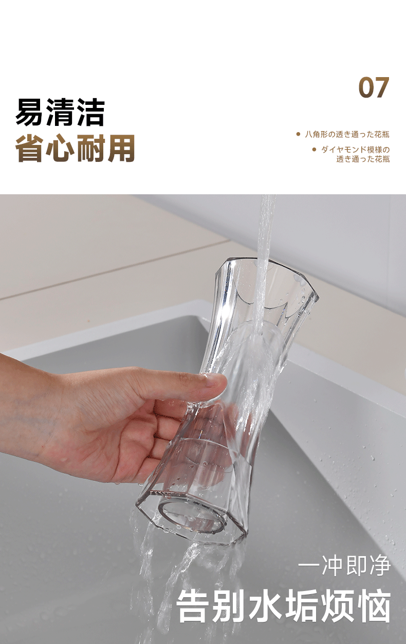 八角高透花瓶 塑料高透防摔花瓶水养水培插花富贵竹透明方形装饰客厅小卧室玄关