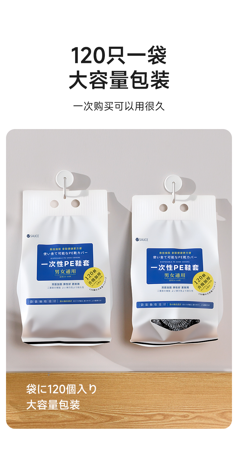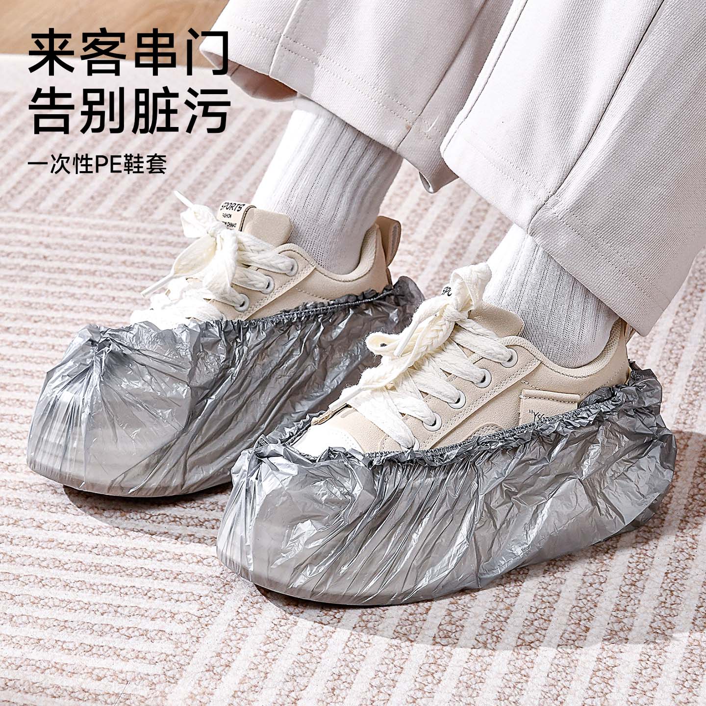 一次性PE鞋套(120只入) 鞋套一次性加厚耐磨防尘客厅儿童学生机房34-44码待客脚套