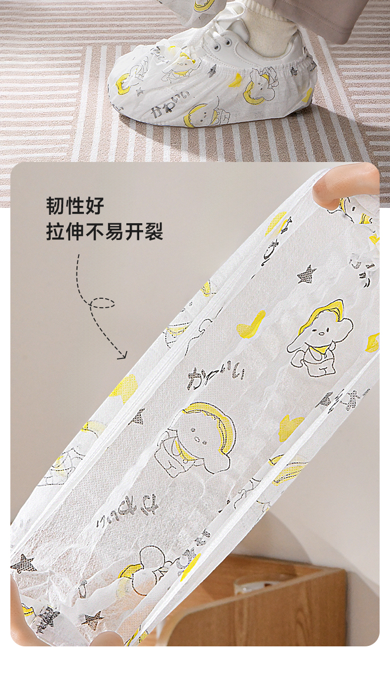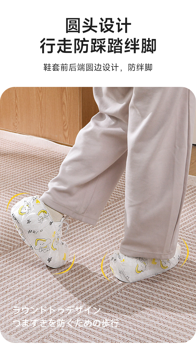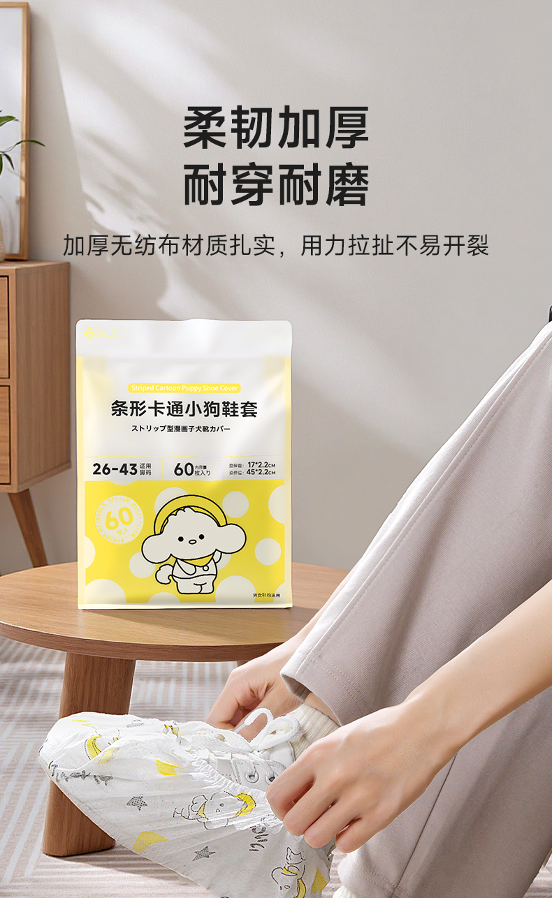 条形卡通小狗鞋套(60只入) 一次性鞋套60只无纺布加厚耐磨防滑反复家用学生成人爬爬垫脚鞋套