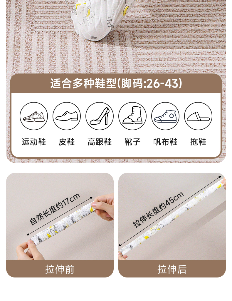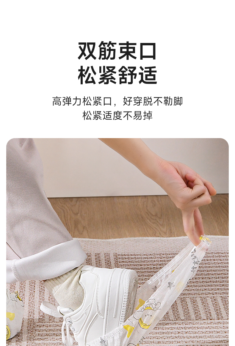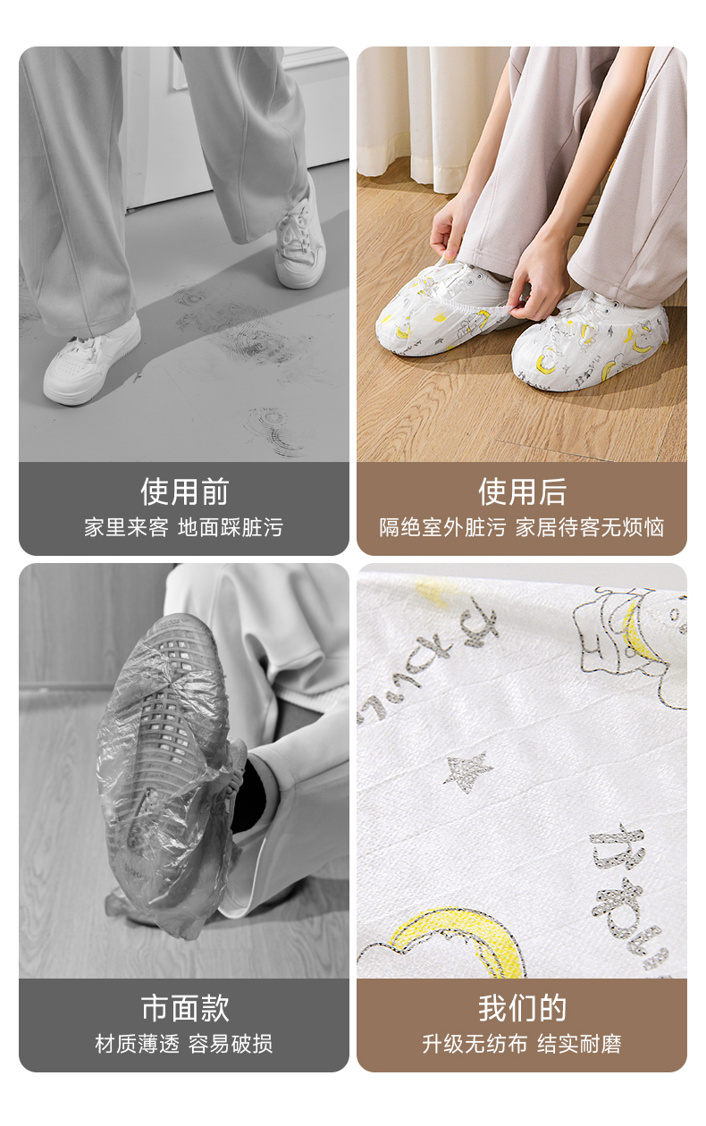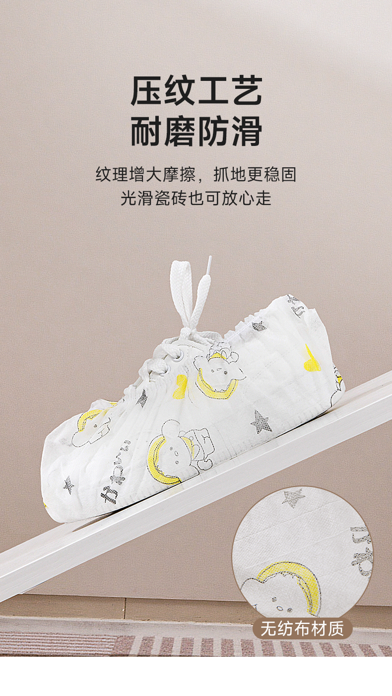 条形卡通小狗鞋套(60只入) 一次性鞋套60只无纺布加厚耐磨防滑反复家用学生成人爬爬垫脚鞋套