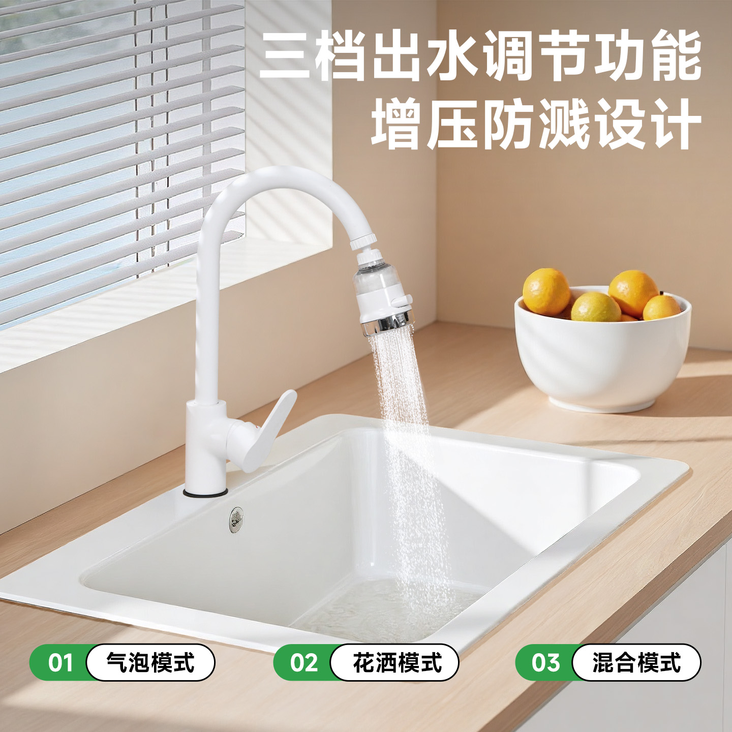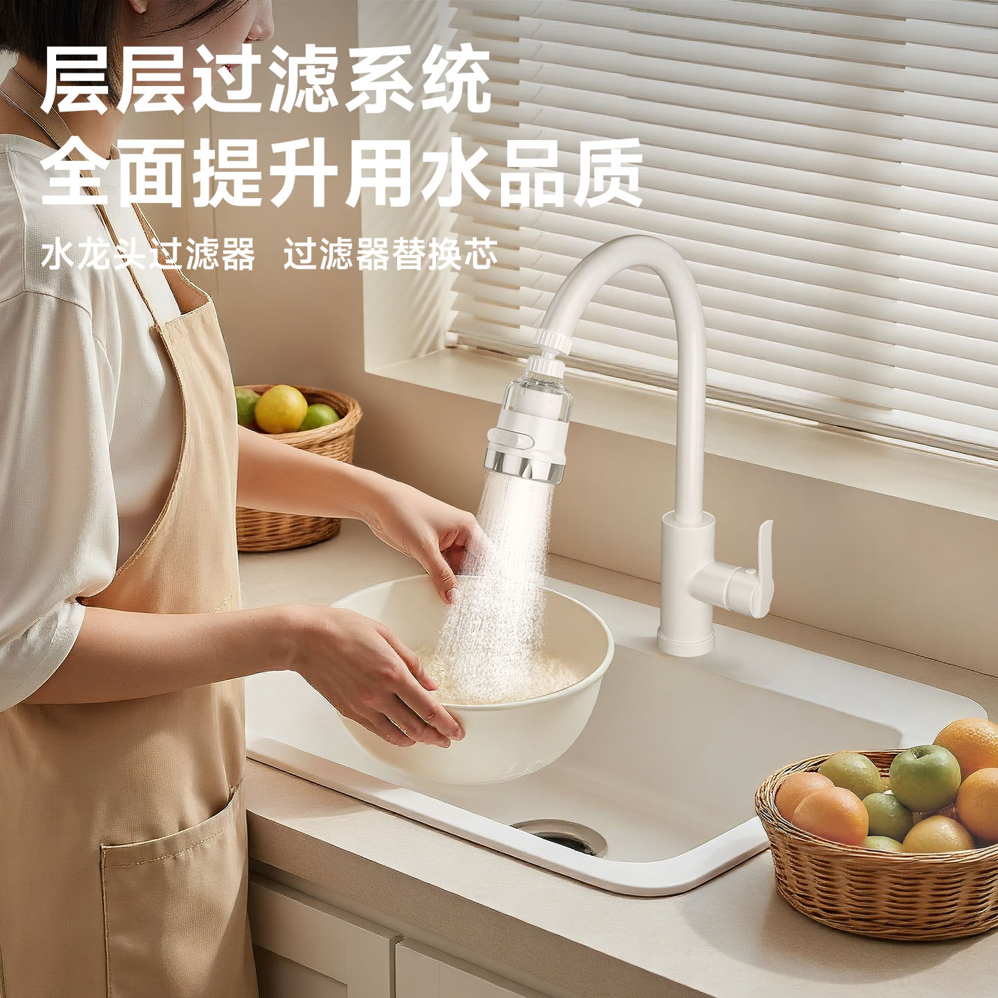 过滤器替换芯(4只装) 水龙头过滤器防溅花洒延伸器厨房通用喷头自来水滤水器