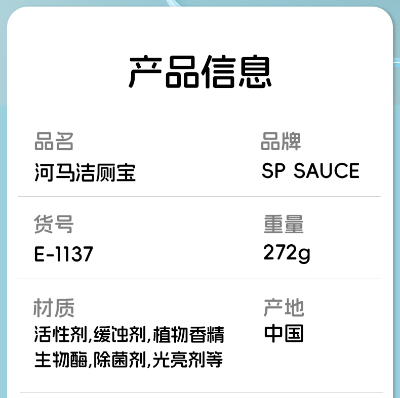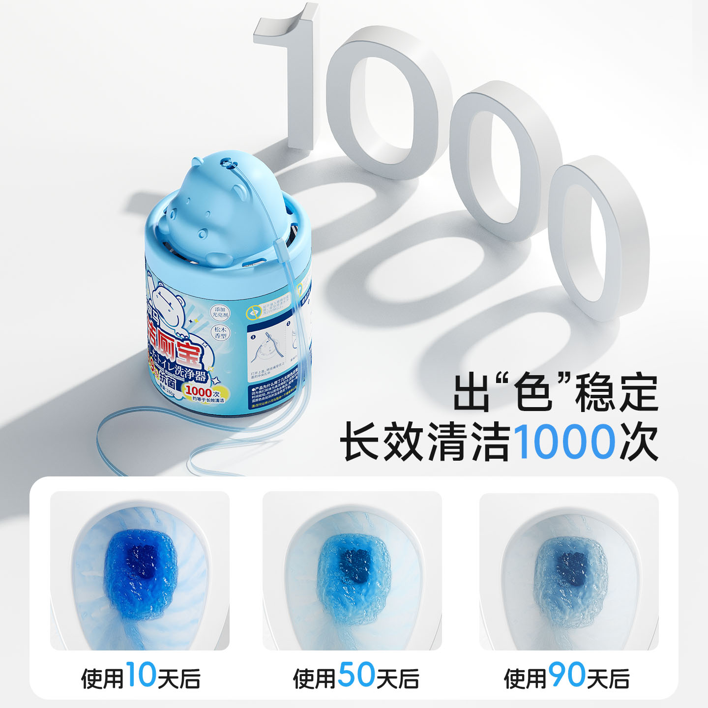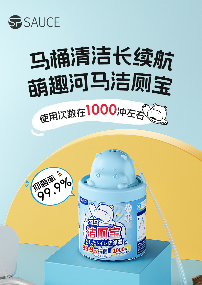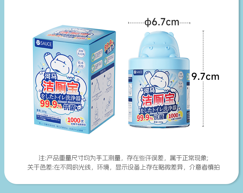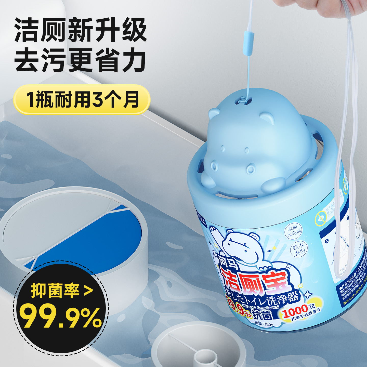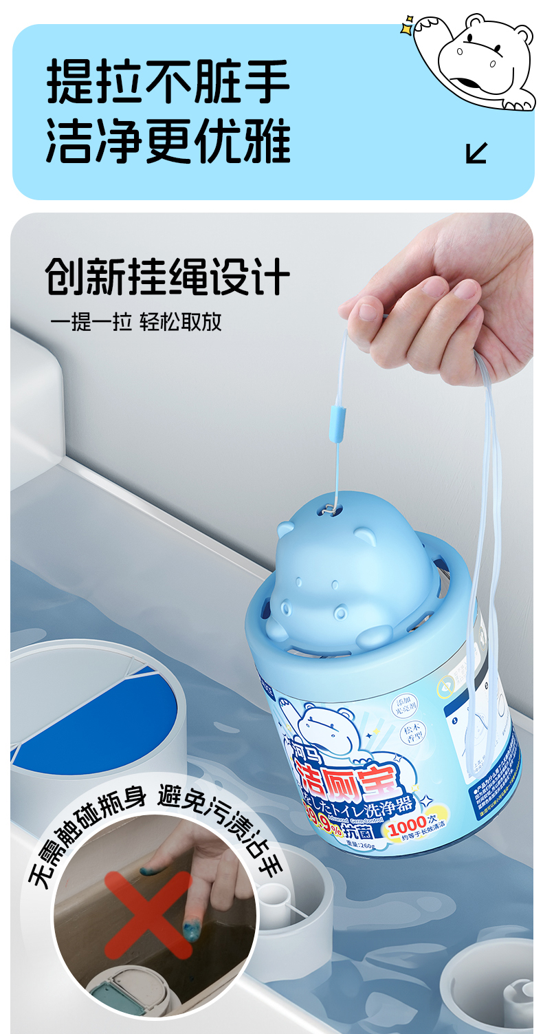 河马洁厕宝 马桶清洁剂洁厕灵宝蓝泡泡清香型厕所除臭