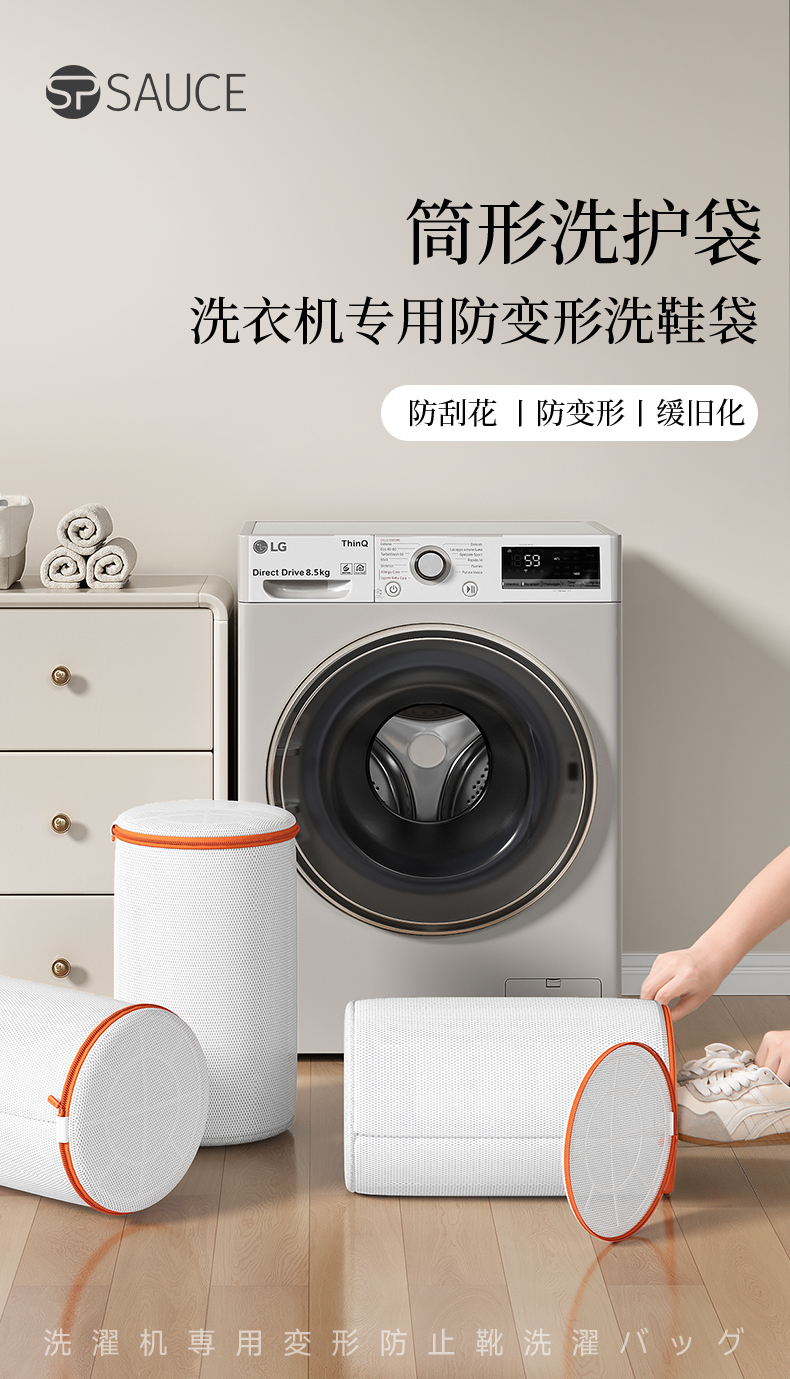 筒形洗护袋(18*31cm) 懒人洗鞋神器洗衣机专用防变形护洗袋家用过滤加厚软毛鞋刷洗鞋袋