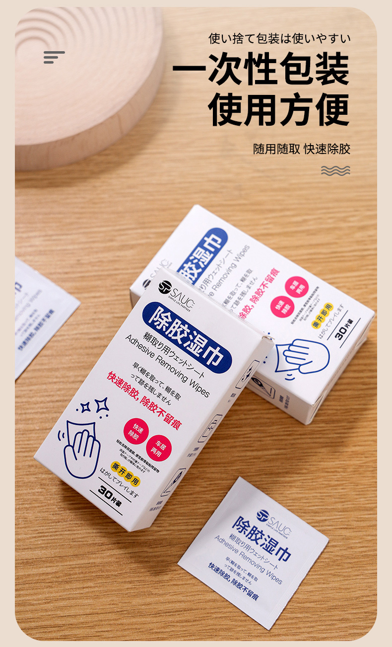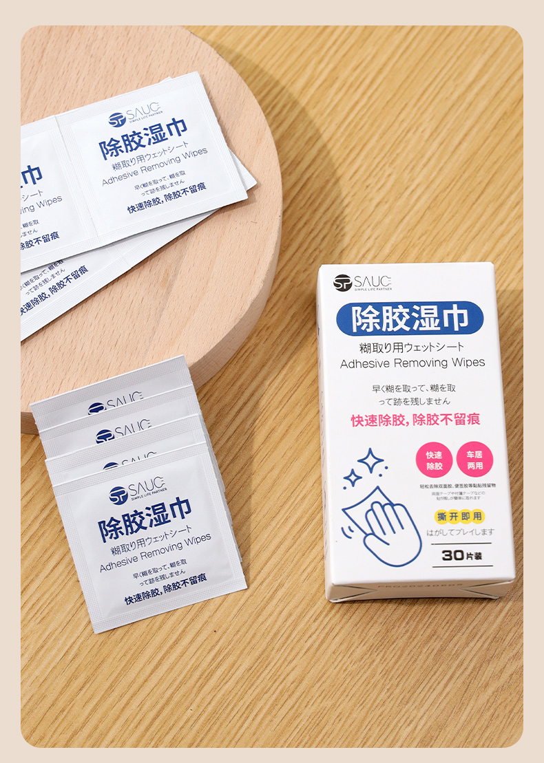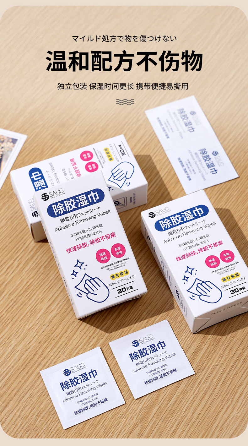 除胶湿巾(30片装) 除胶湿巾双面去除残胶去胶神器一次性清洁剂家用万能擦玻璃小包便携湿纸巾