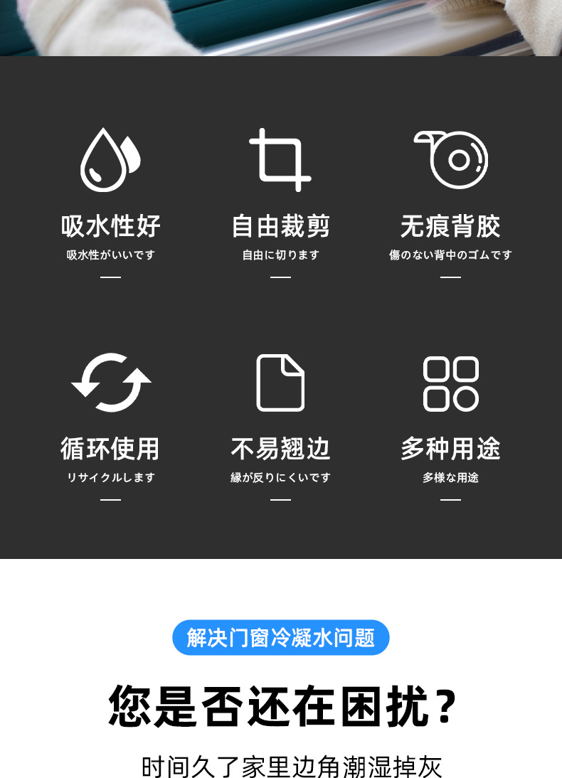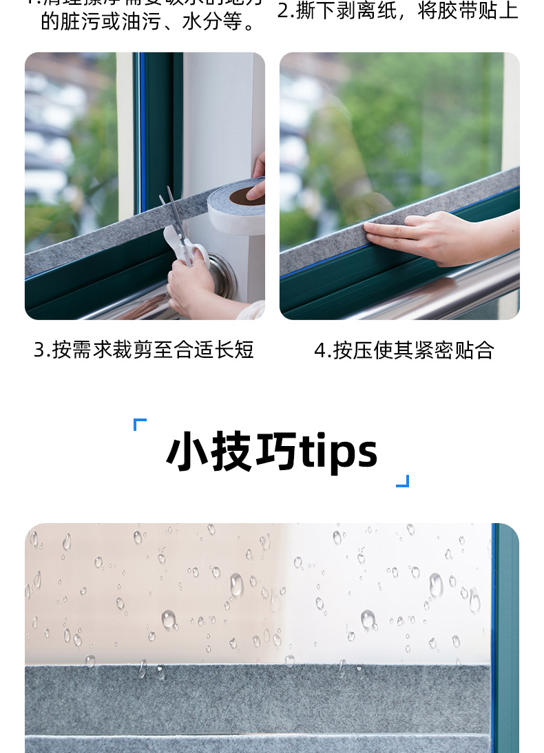 窗户玻璃吸水贴(7cm*50CM) 家用窗户玻璃吸水贴加厚防冷凝水吸水条防水海绵窗台淌水结露神器