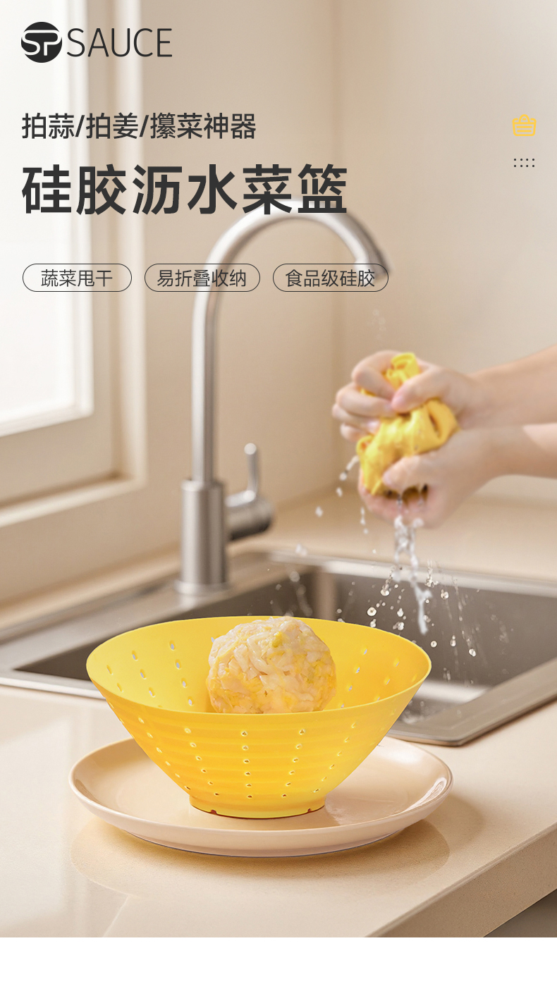 硅胶沥水菜篮 沥水碗洗菜篮厨房沙拉甩干酸菜挤水篮创意洗菜盆沥水篮
