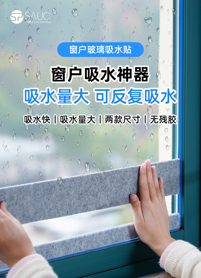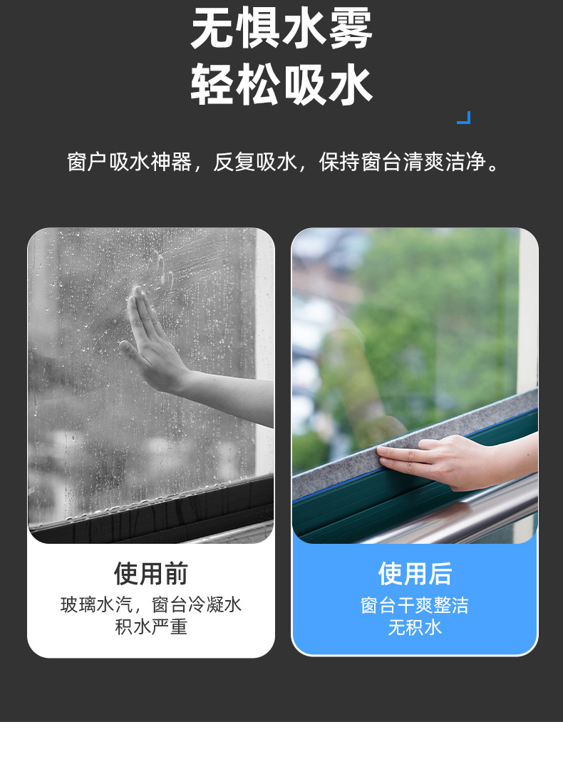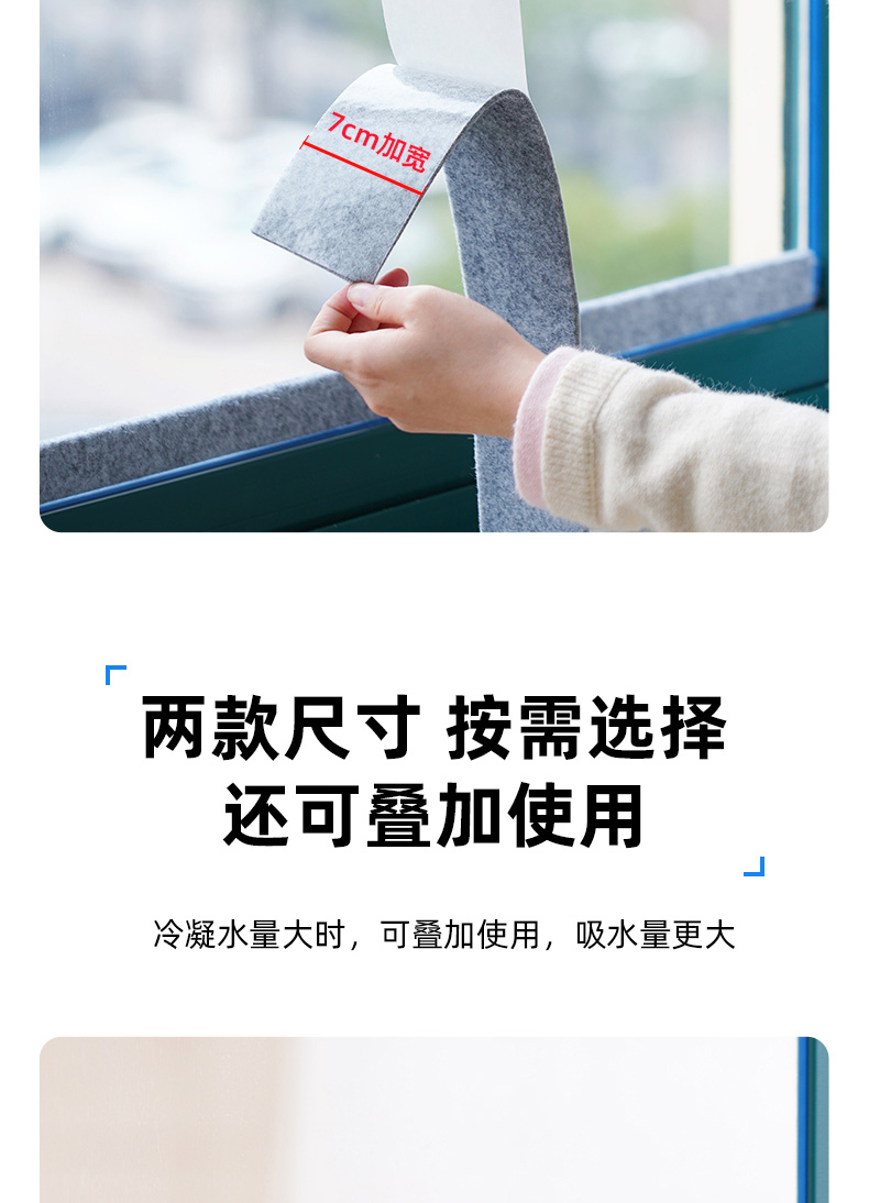 窗户玻璃吸水贴(3cm*4m) 窗户玻璃吸水贴加厚防冷凝水海绵条飘窗台淌水结露神器