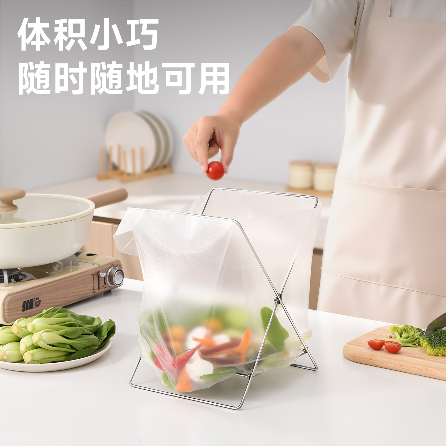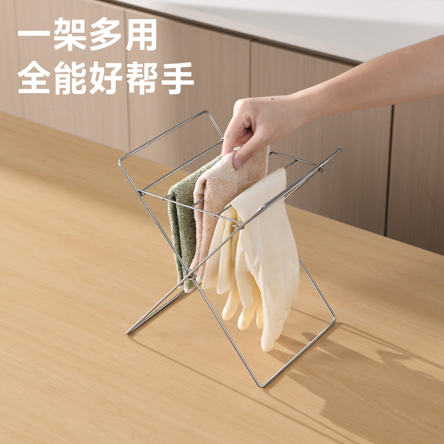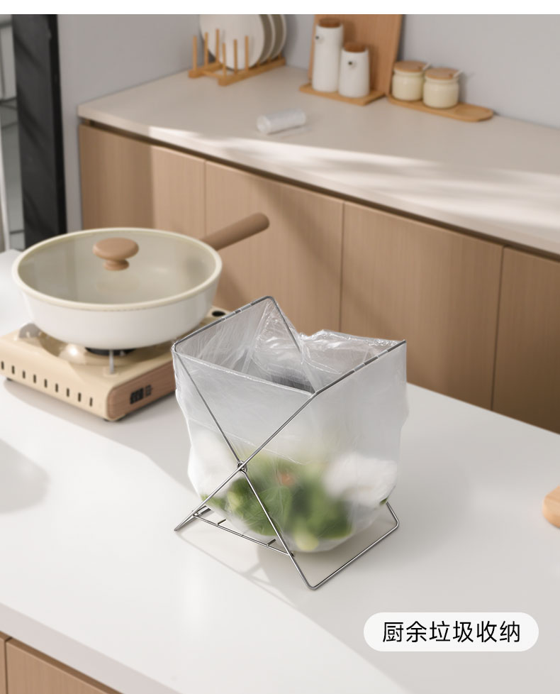 不锈钢折叠垃圾架 不锈钢折叠垃圾架厨房台面水槽垃圾分类塑料袋支架抹布架