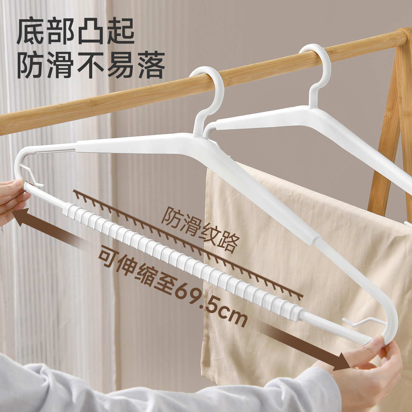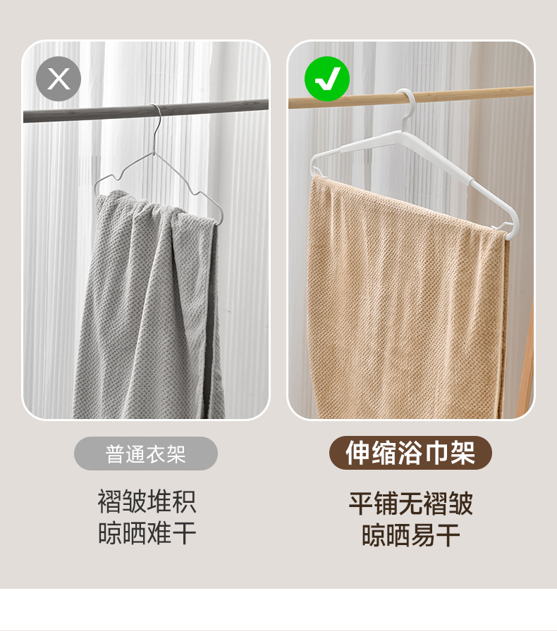 伸缩浴巾架 日本可伸缩晾被子浴巾专用无痕防滑大衣架家用毛巾床单被晾晒神器
