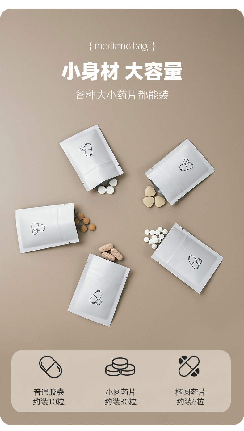 便携小药袋(30枚) 旅行药物分装袋留学出差药品收纳袋防尘防潮便携小药袋