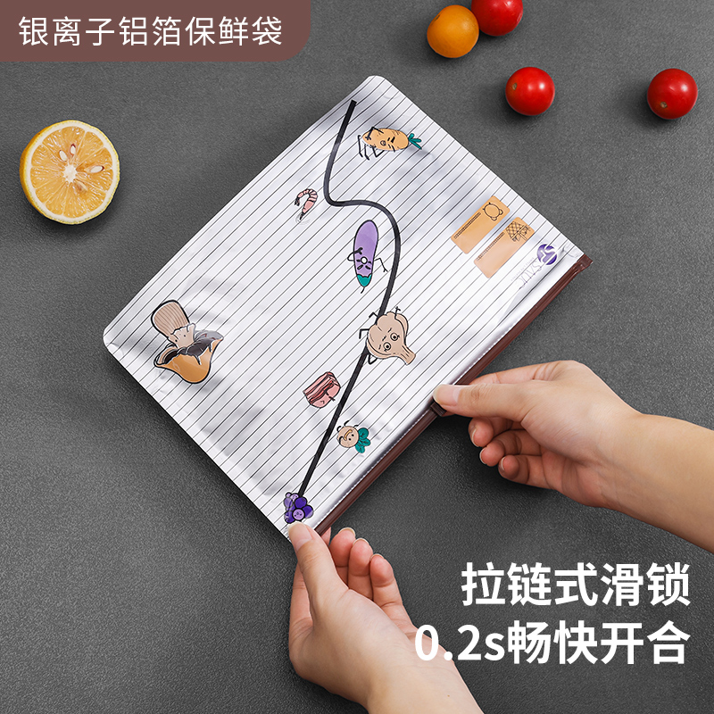 银离子铝箔保鲜袋(中号10枚入) 银离子铝箔保鲜袋冷藏冷冻收纳袋海鲜肉鸡鸭保鲜抑菌密封避光大容量保鲜袋