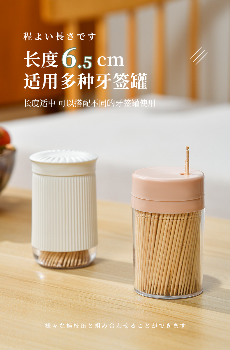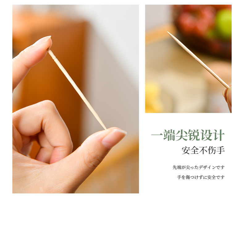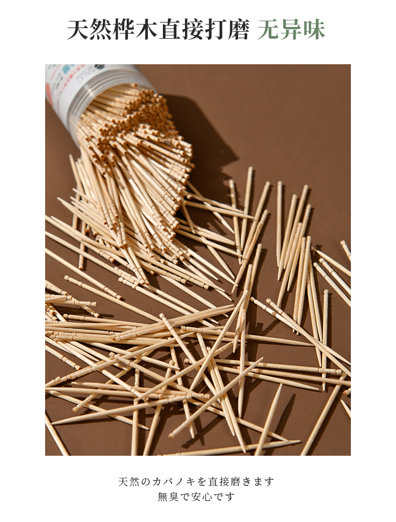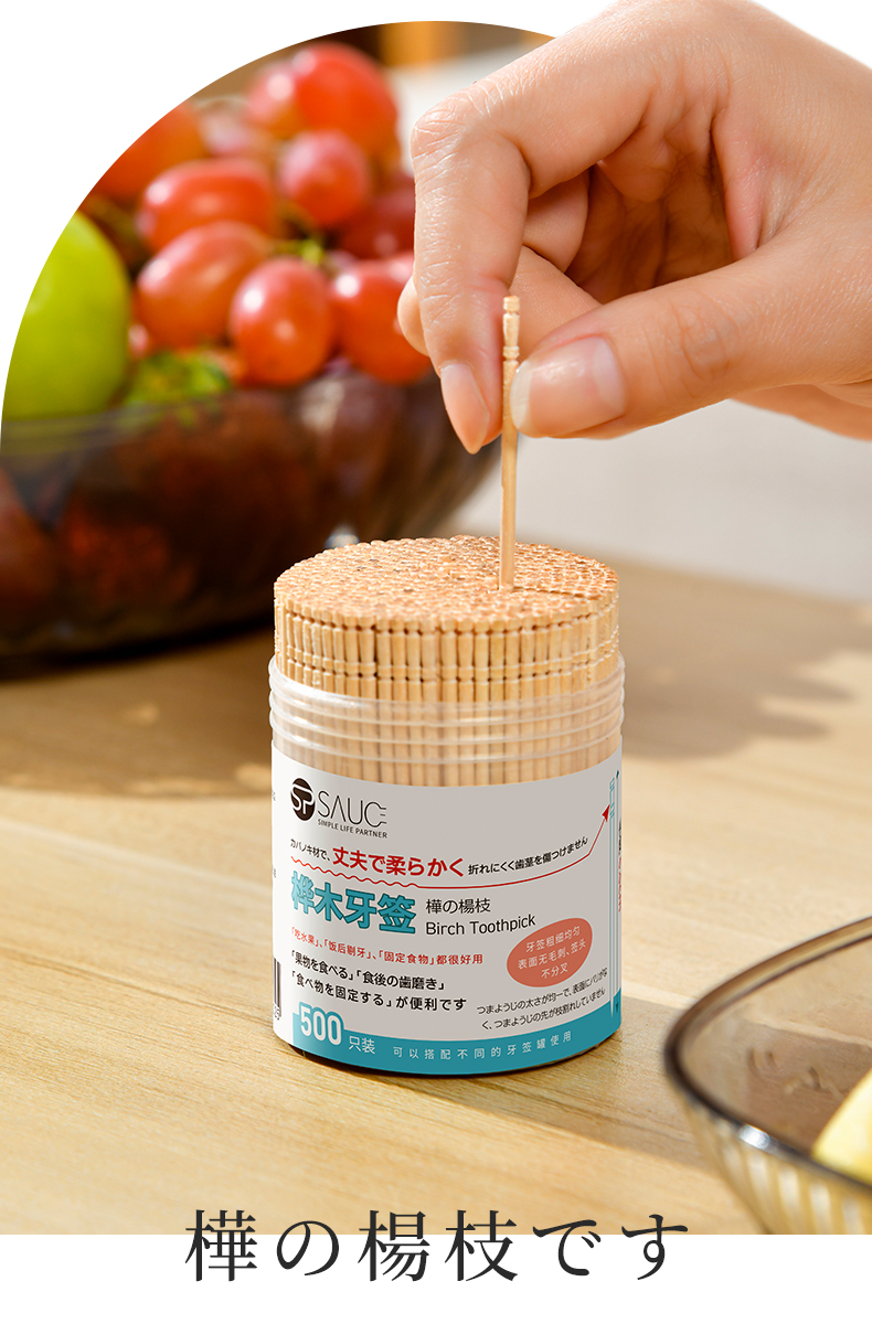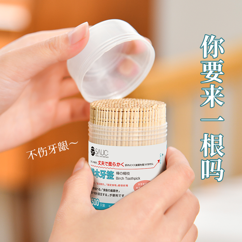 桦木牙签(500支) 一次性桦木牙签单头尖细实木剔牙棒加粗水果签带牙签桶